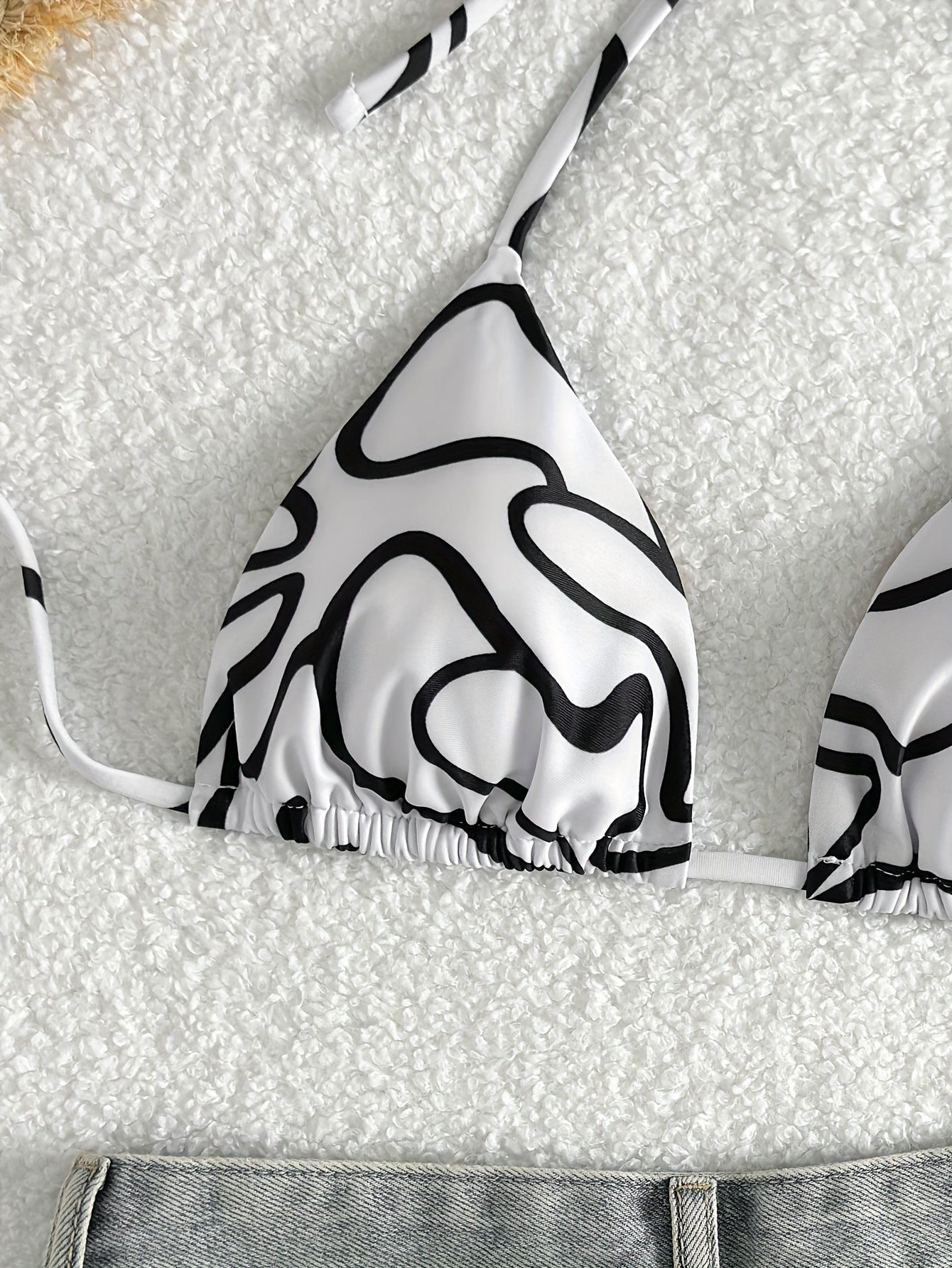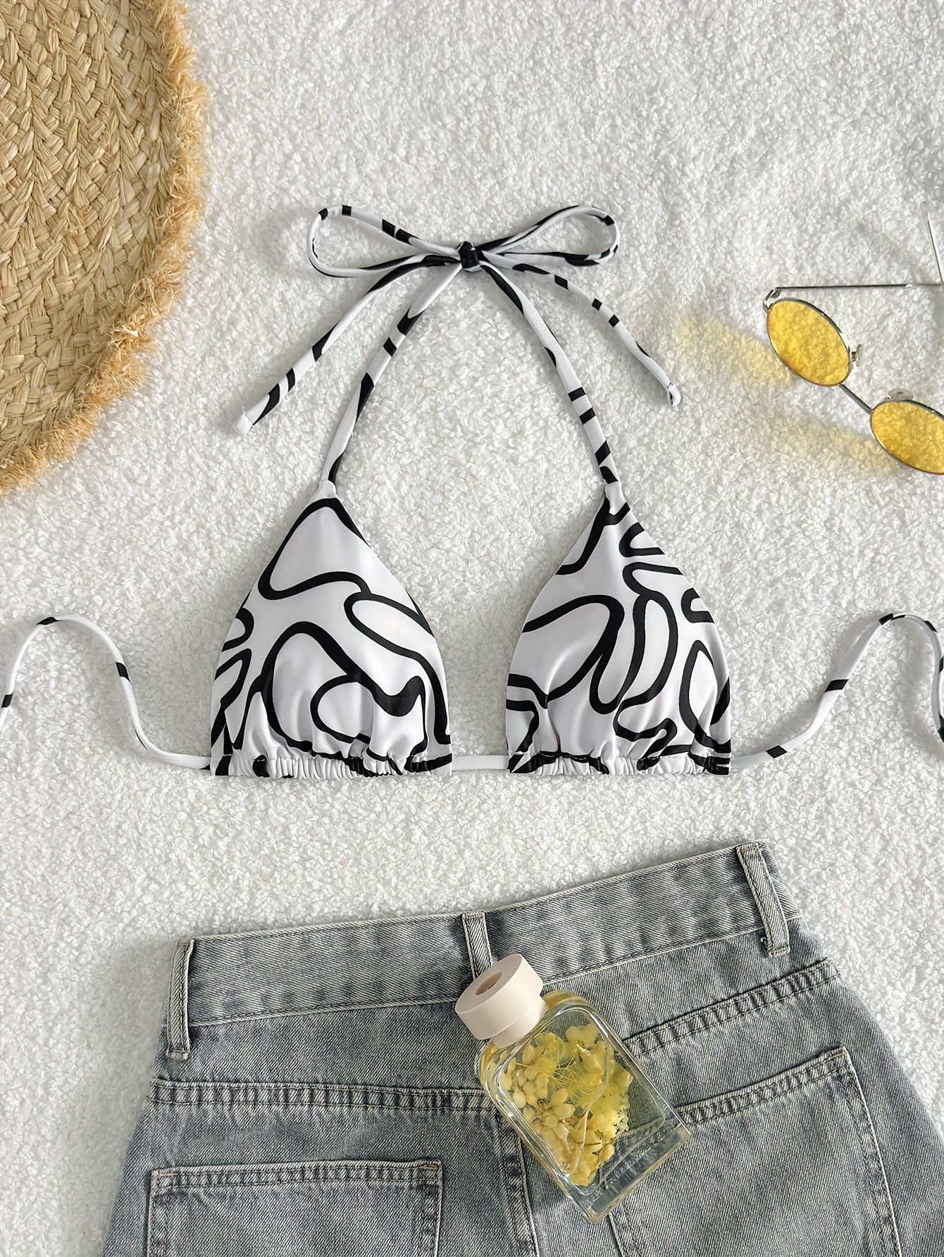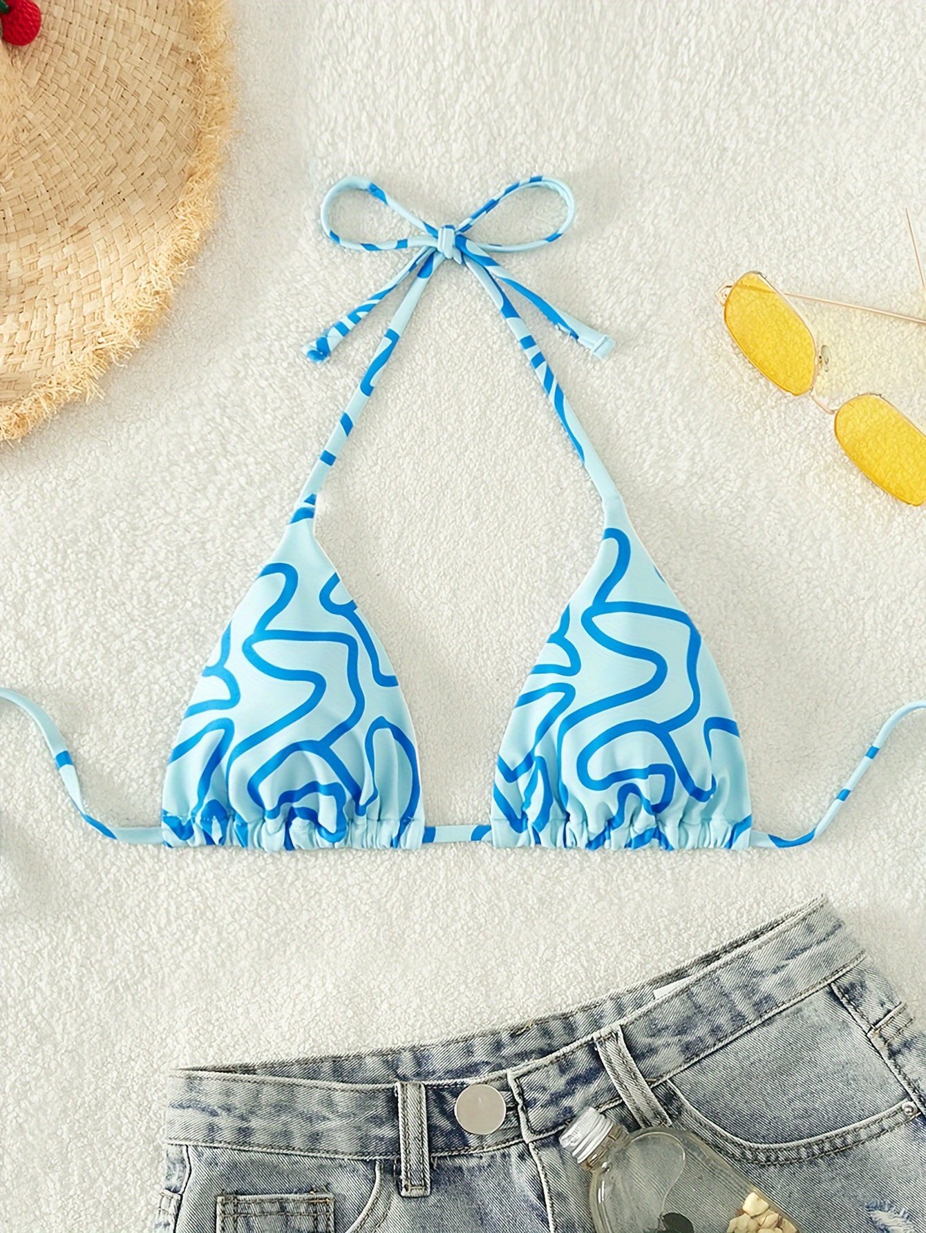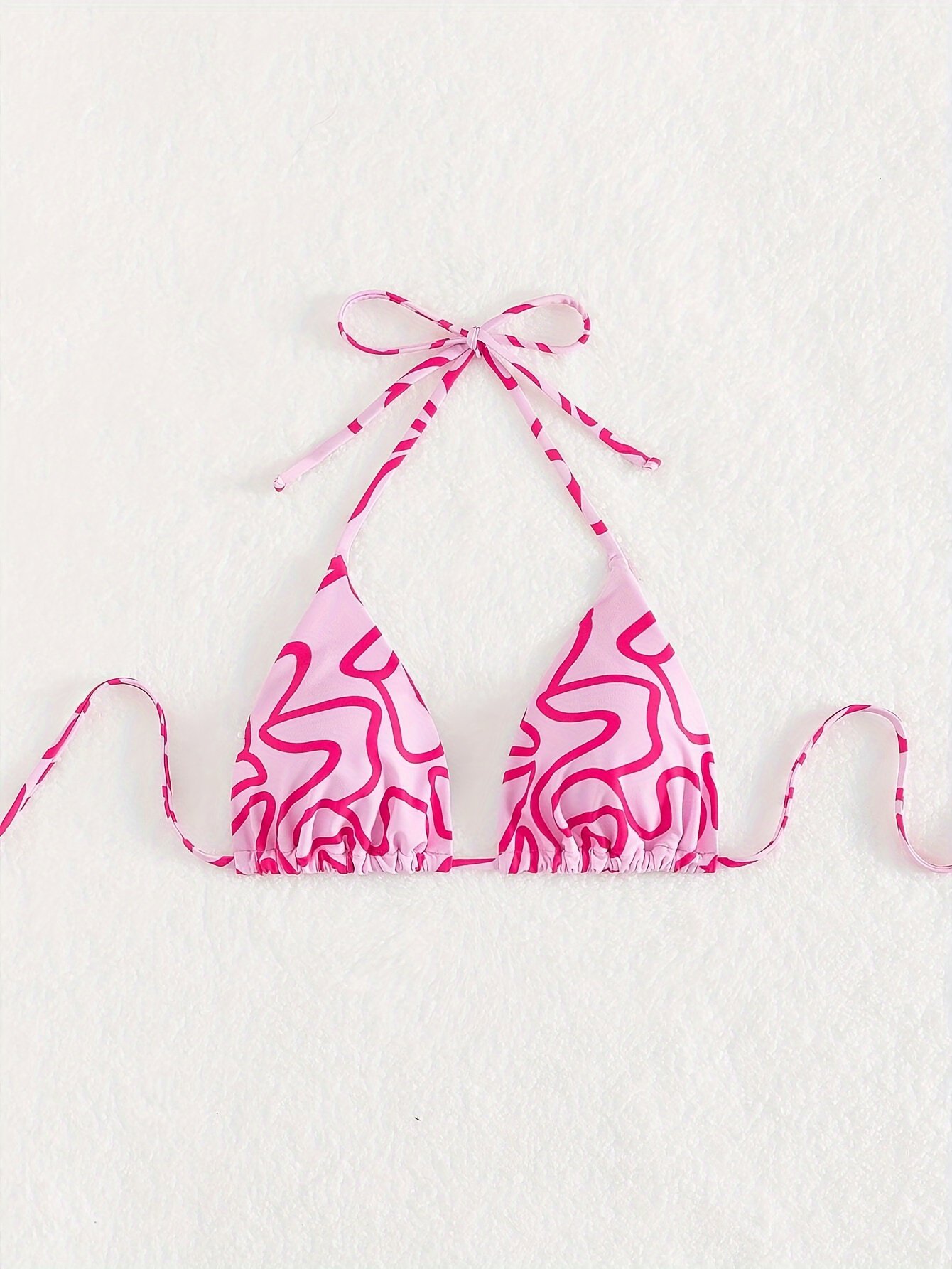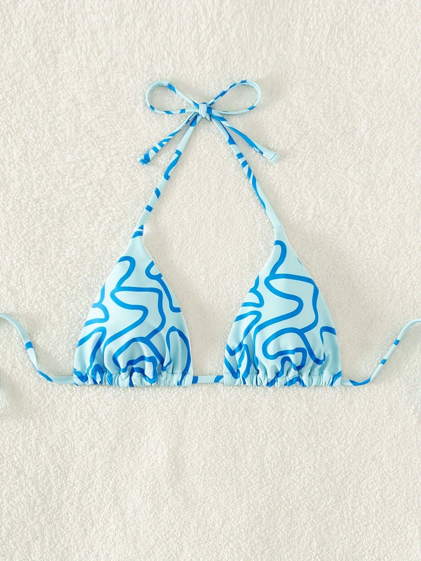 Allover Print Triangle Halter Bikini Top, Spaghetti Strap Backless Stretchy Swimming Top, Women’S Swimwear & Clothing