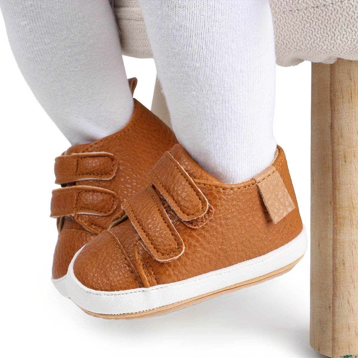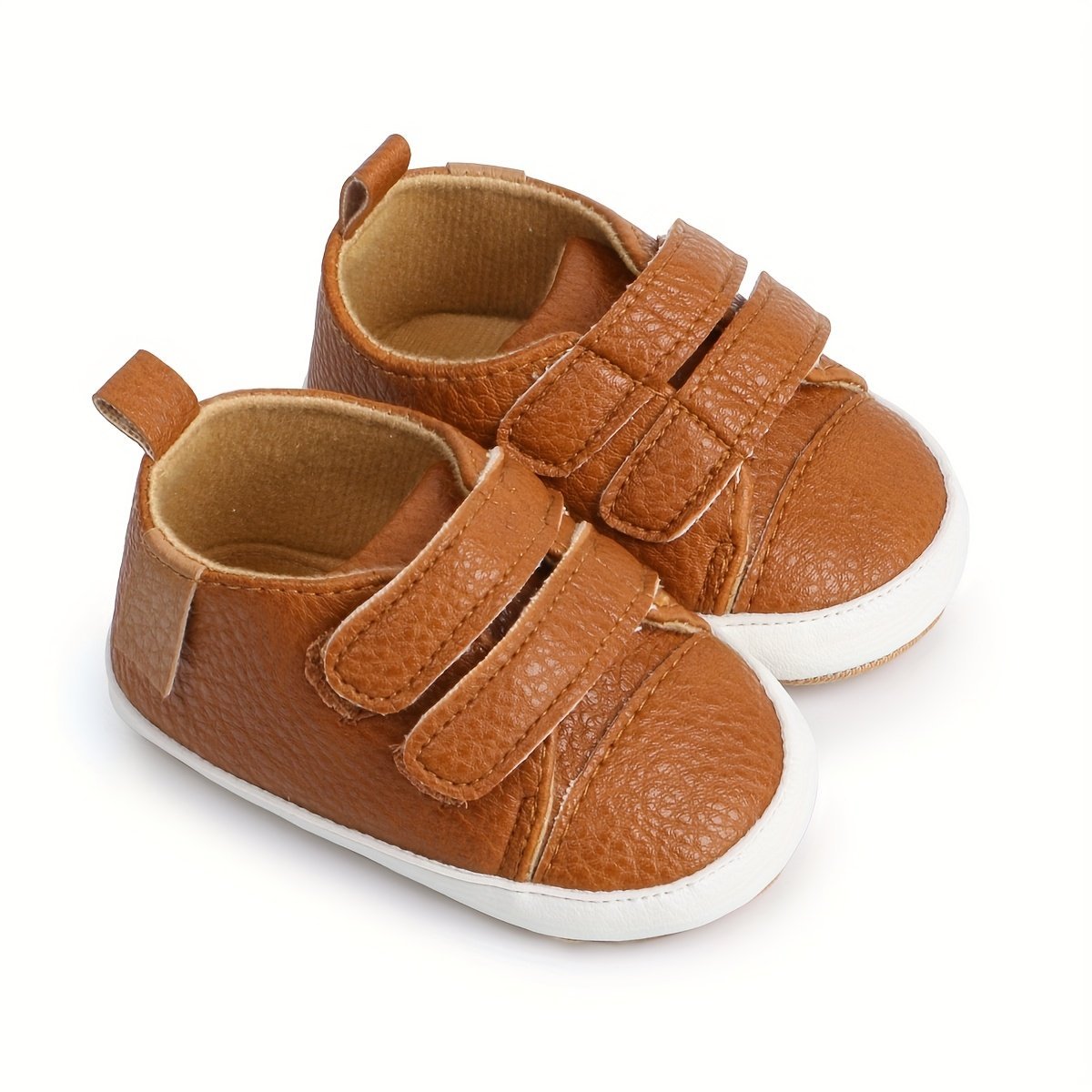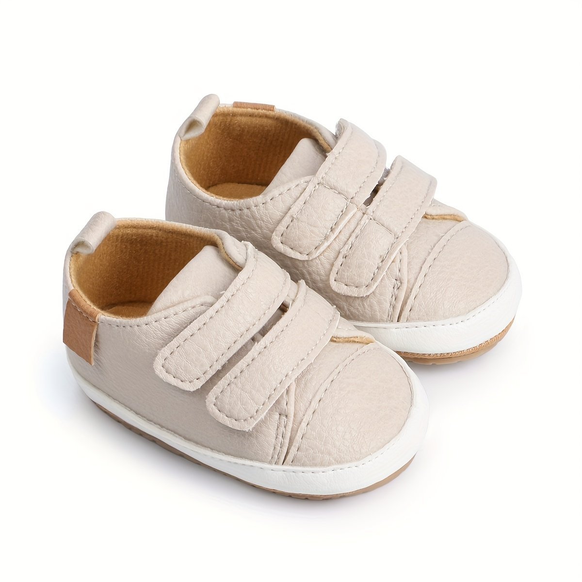 Baby Boys’ First Walkers Sneakers – Soft Synthetic & Non-Slip Rubber Sole, Closure, Breathable Fabric Lining For Spring/Fall, Beige & White, Baby Boy Shoes, Spring Infant Footwear, Stylish Infant Sneakers, Comfortable Infant Shoes