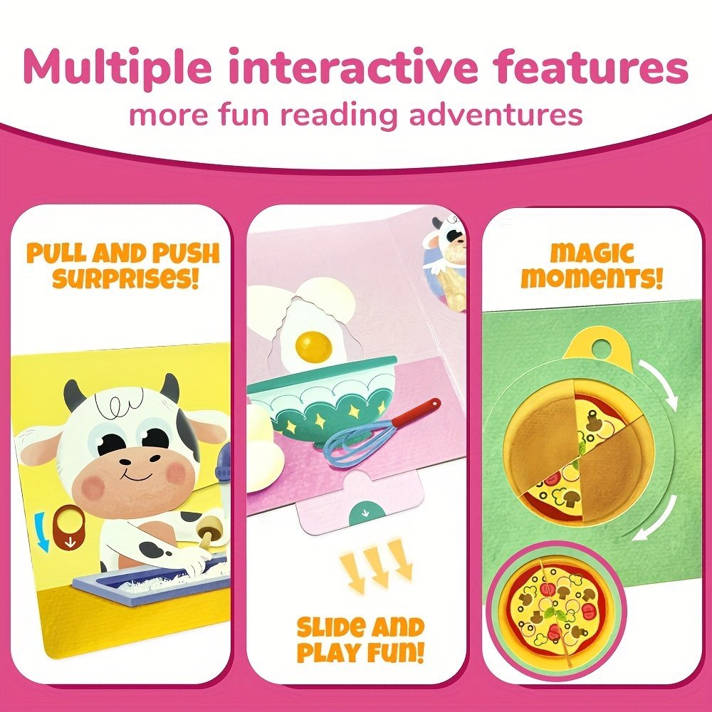 Baby Cow Lift-The-Flap Books, Good Eating Habit Formation, Interactive Picture, Cow’S Pizza Day, Push-Pull Book, Early Education Enlightenment, Illustrated By Canadian Artist, Birthday Gift, Bear Tale