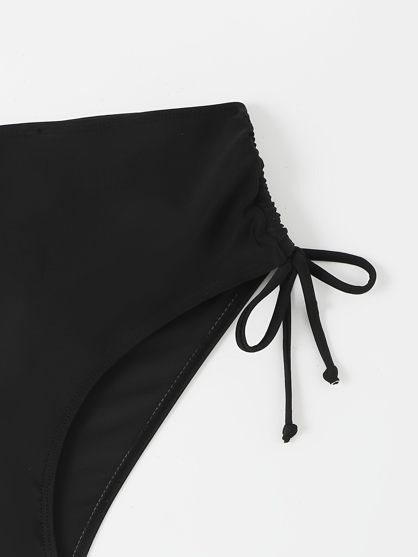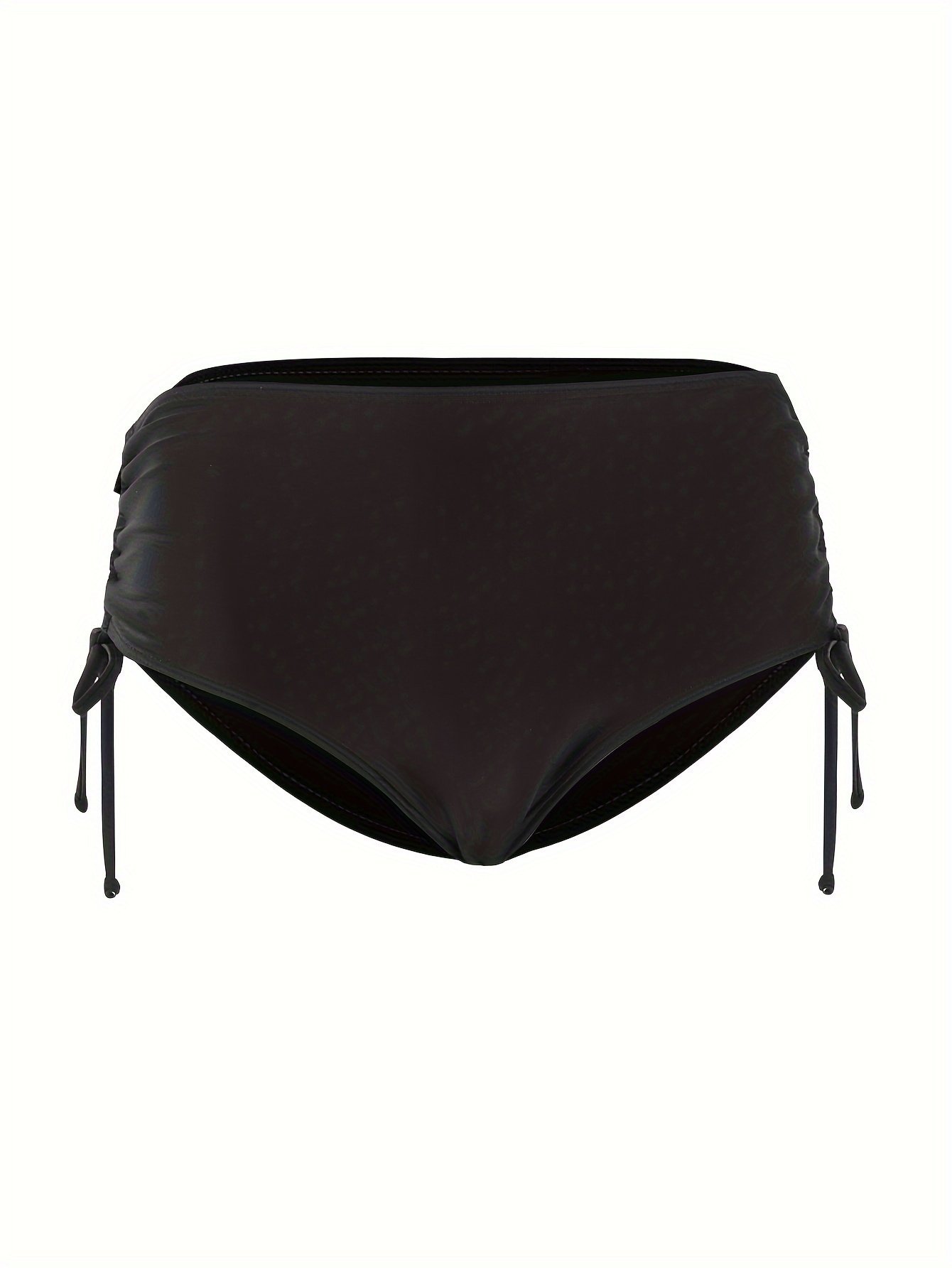 Black High-Stretch Bikini Bottom, Sexy Style Drawstring Tie Side High Cut Beachwear Bottom, Women’S Swimwear & Clothing