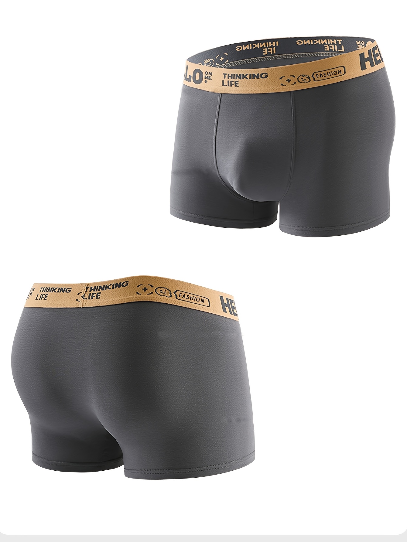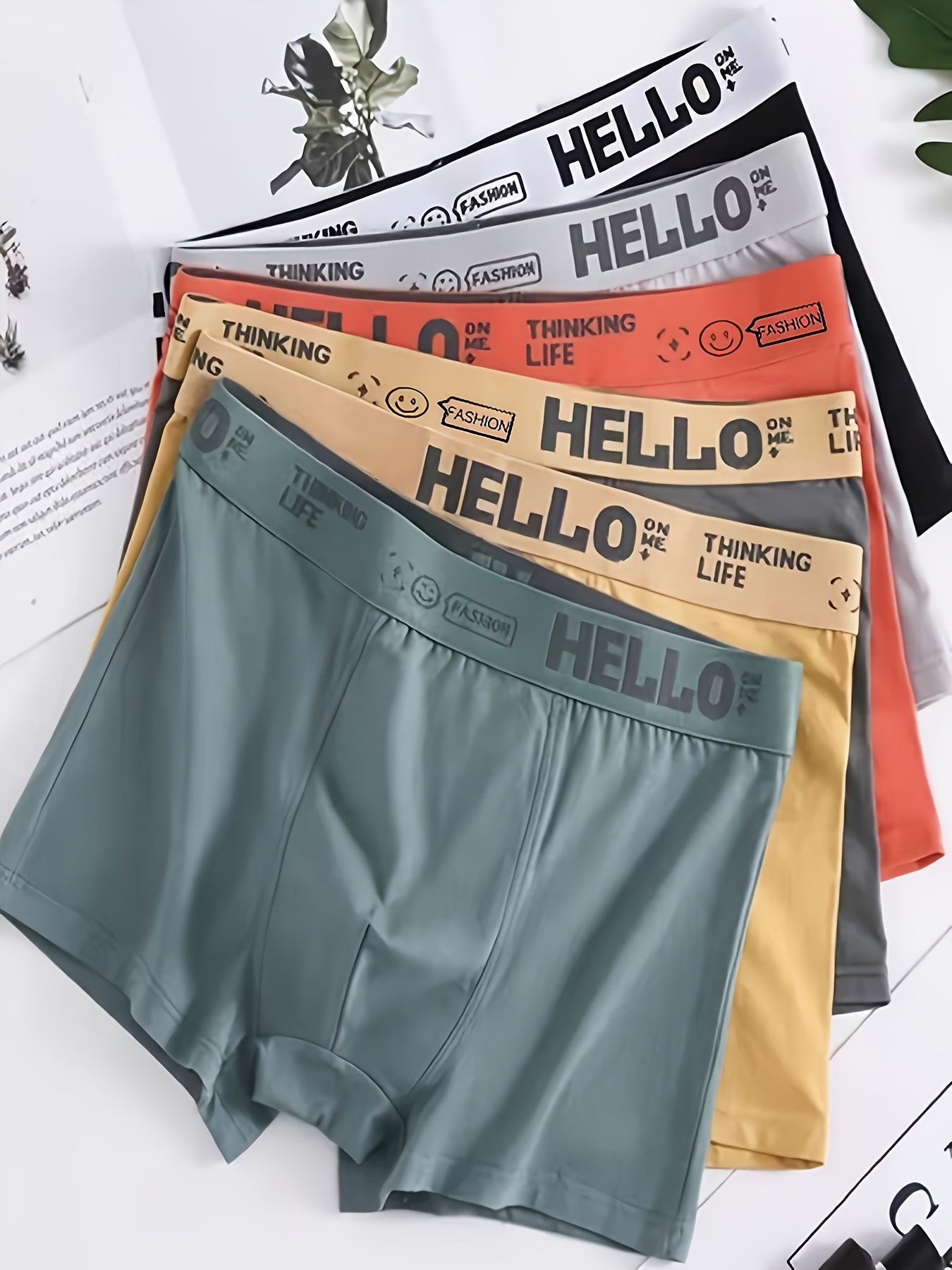 Breathable & Stretchy Men’S Boxer Briefs – Blend, Random Color, Comfort Fit With “Hello” Embroidery, Ideal For Daily Wear, Daily Wear Underwear|Playful Design|Glossy Fabric