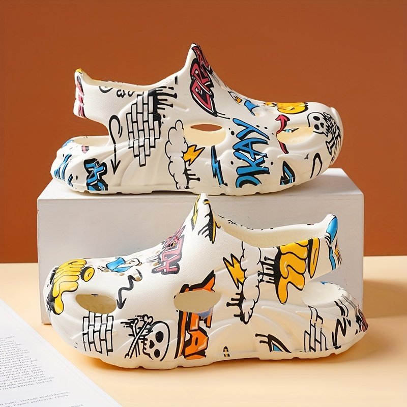 Casual Cute Cartoon Slip On Clogs For Boys, Lightweight Non-Slip Wear-Resistant Sandals For Indoor Outdoor Beach, Spring And Summer