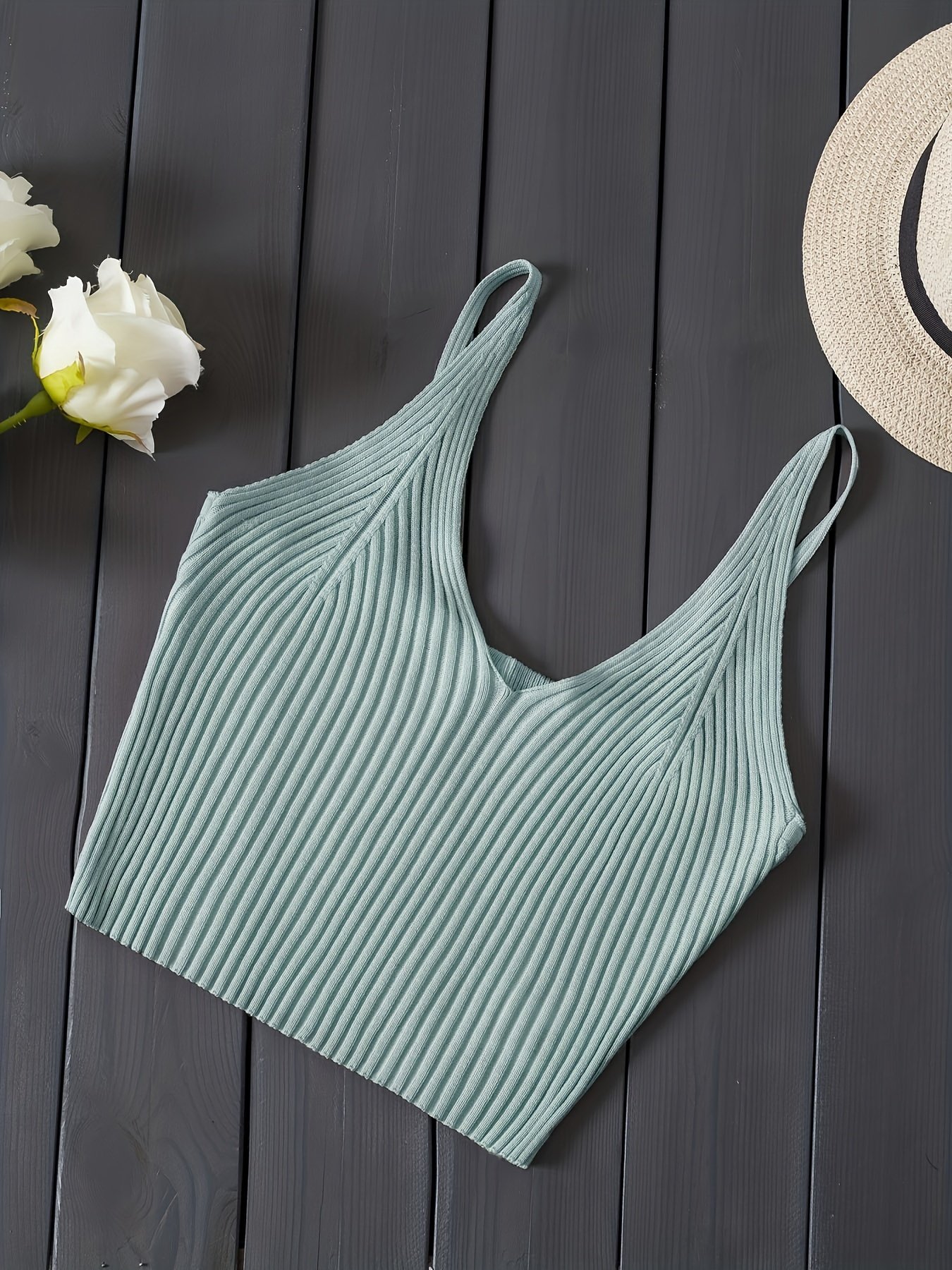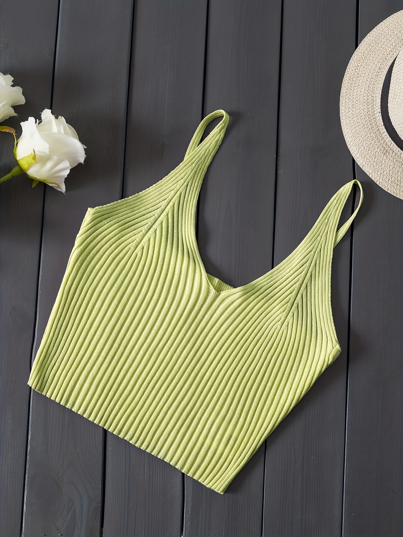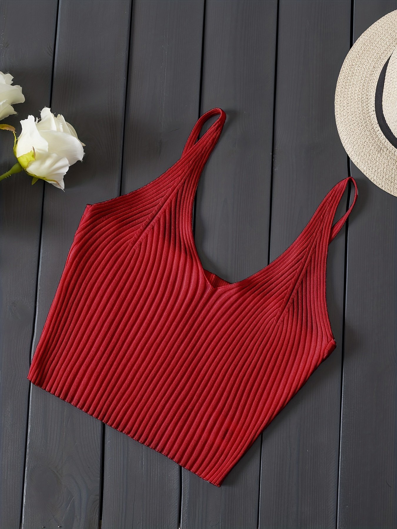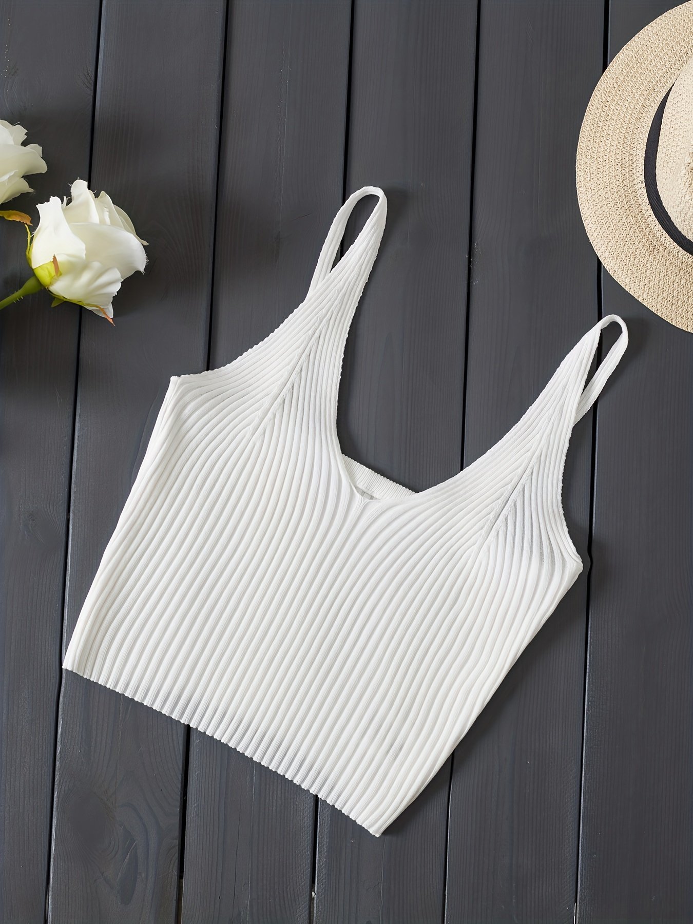 1Pc Women’S Casual Ribbed Tank Top, Solid Color Knit Vest With Side Stripe Detail, Low Neck Polyester Camisole For All Seasons, Versatile Layering Piece