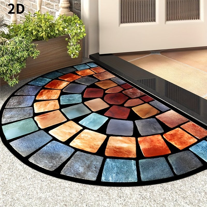 Chic Art Design Non-Slip Door Mat – Thick, Soft Polyester Carpet For Home Decor, Ideal For Porches & Living Rooms
