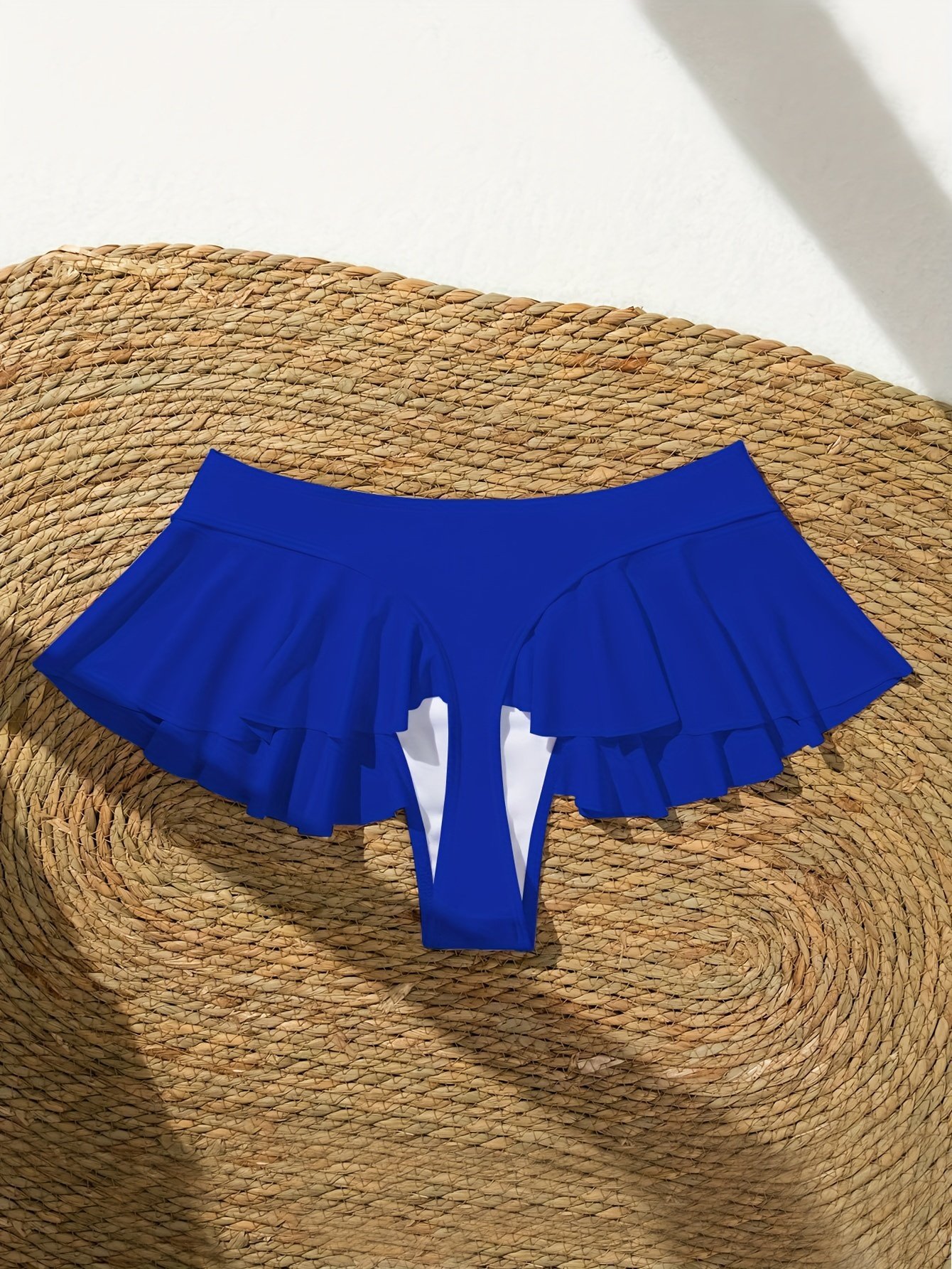 Chic Blue Low-Rise Swim Skirt With Side Ruffle Detail – Stretchy Nylon/Elastane Blend, Machine Washable, Perfect For Poolside Fashion