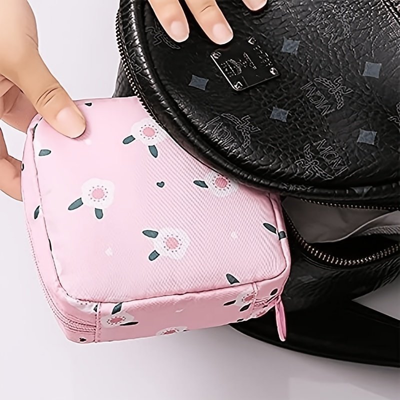 Chic Cartoon Printed Sanitary Napkin Organizer Bag, Multifunctional Travel Pouch With Zipper Makeup And Essentials For Valentine’S Day Gifts