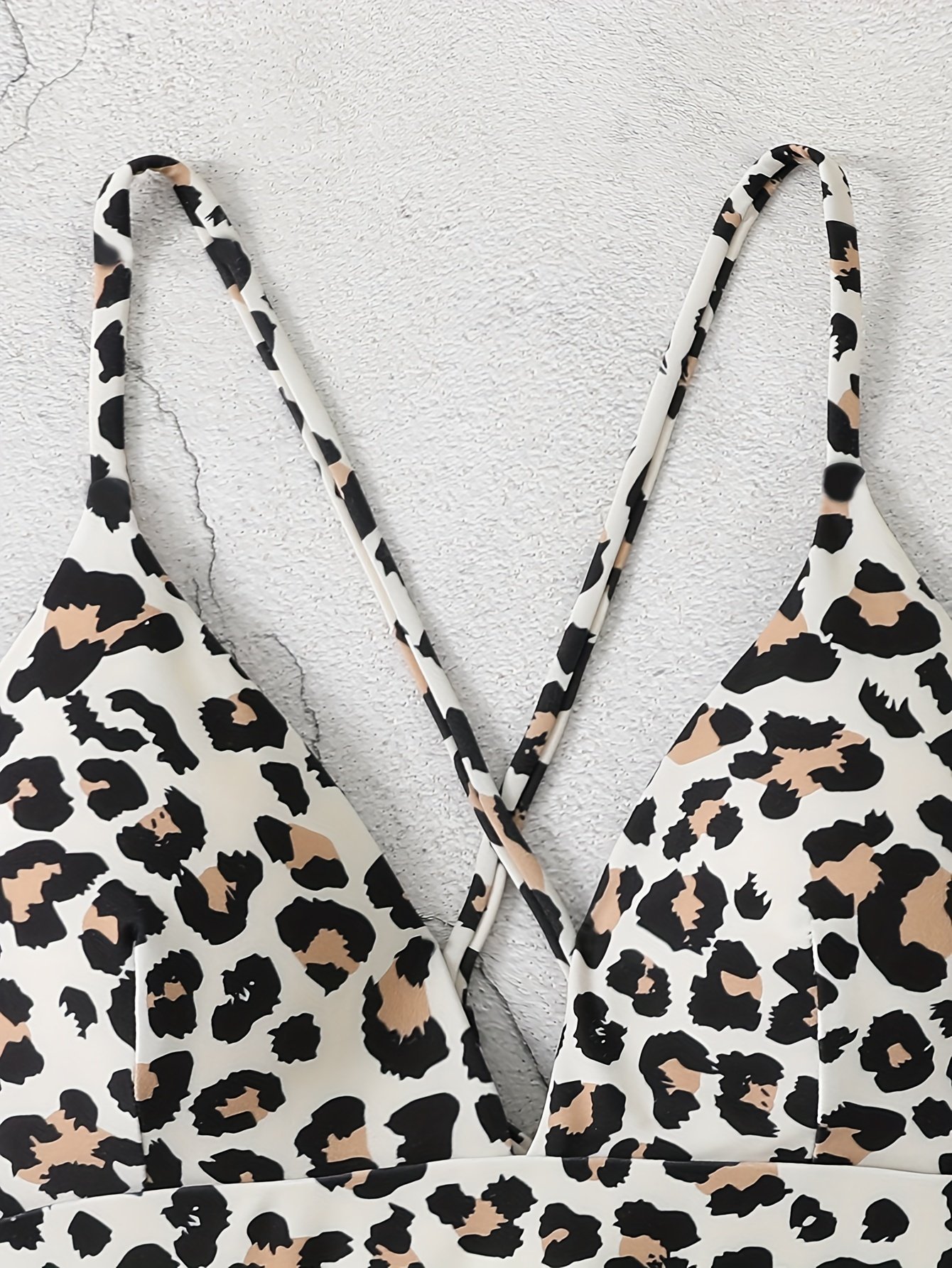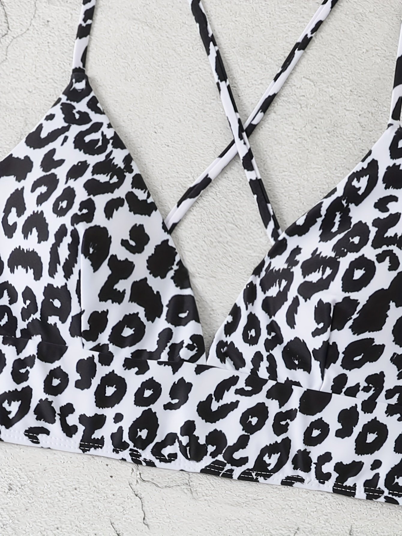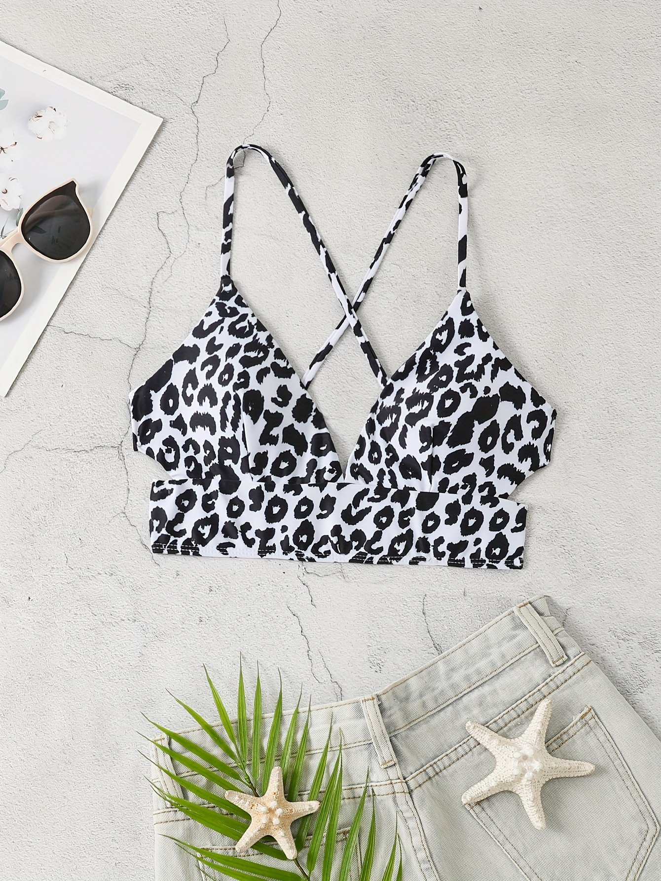 Chic Leopard Print Bikini Top For Women – High Stretch, Cross-Back Design, Machine Washable