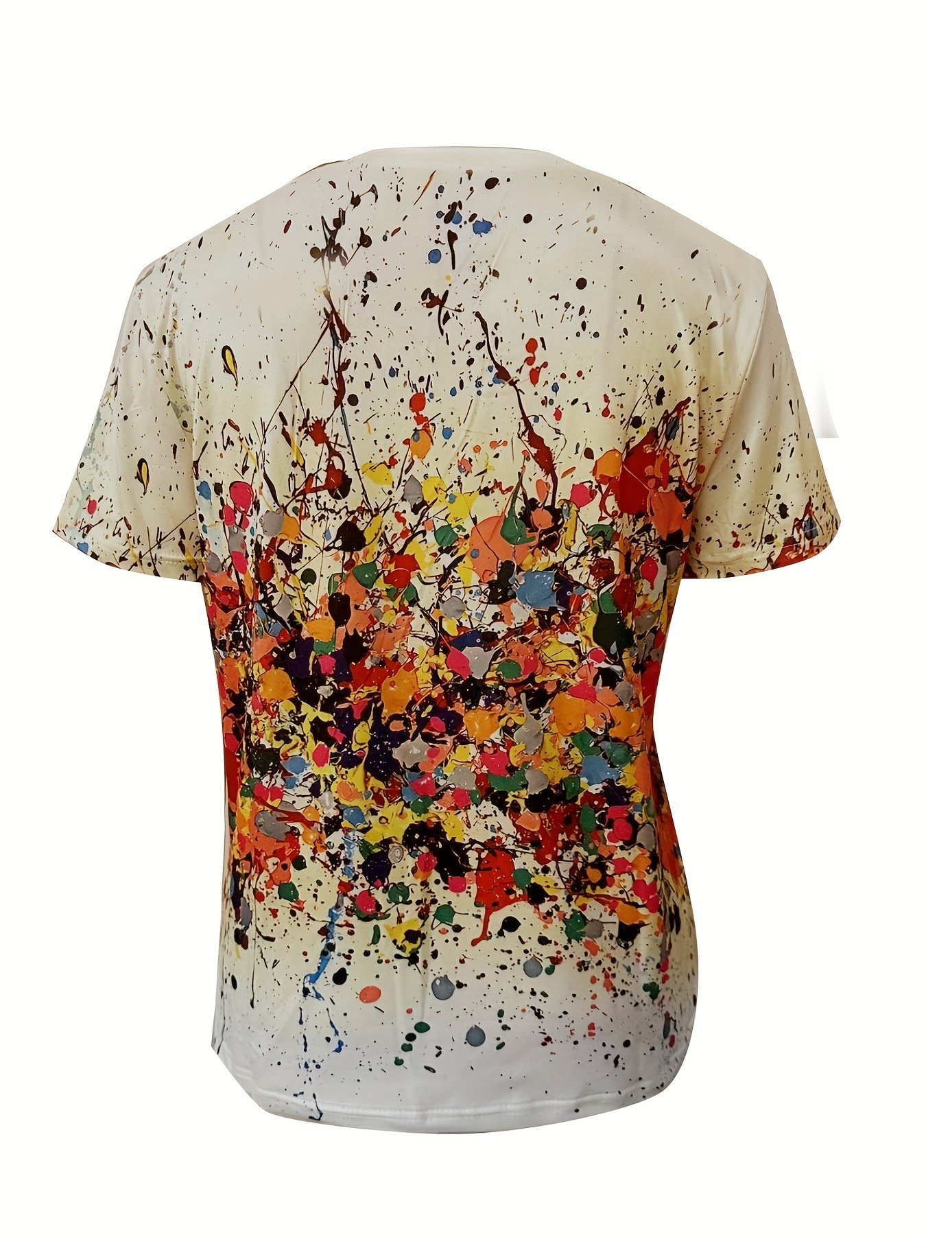 Colorful Print Crew Neck T-Shirt, Casual Short Sleeve Top For Spring & Summer, Women’S Clothing