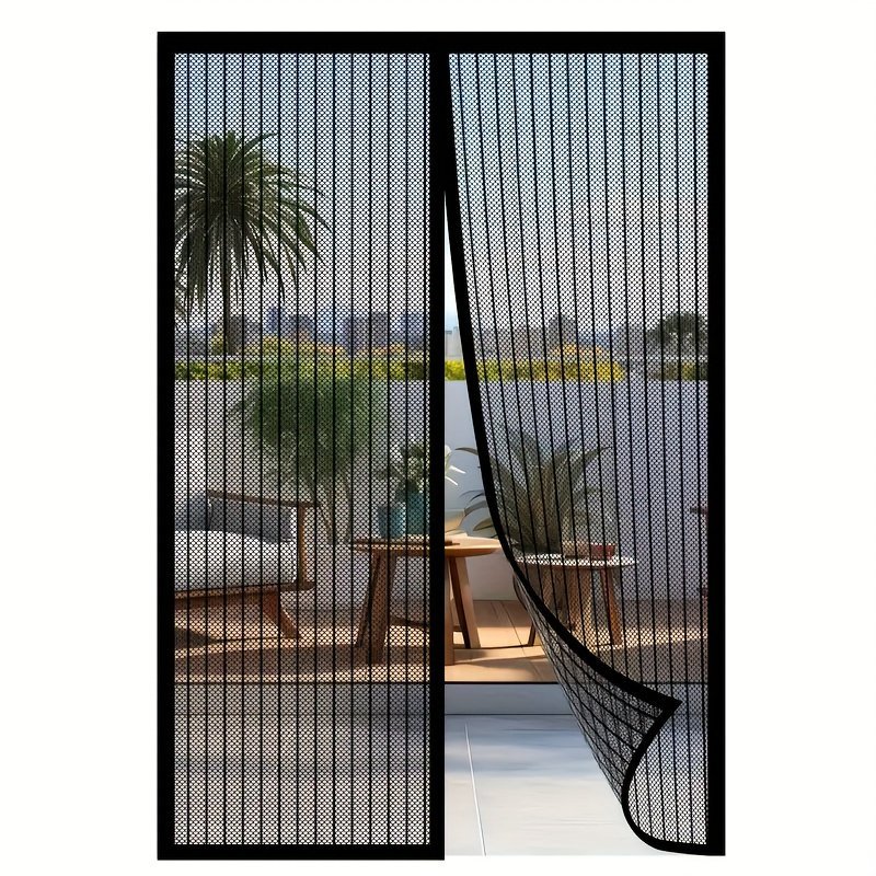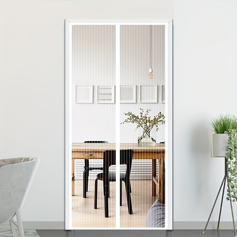 Contemporary Magnetic Screen Door – Self-Sealing, Heavy Duty, Hands-Free Mesh Partition Keeps Bugs Out – Satin Weave, Linen-Like Material, Space-Themed, For Various Room Types, No Electricity Or Battery Needed