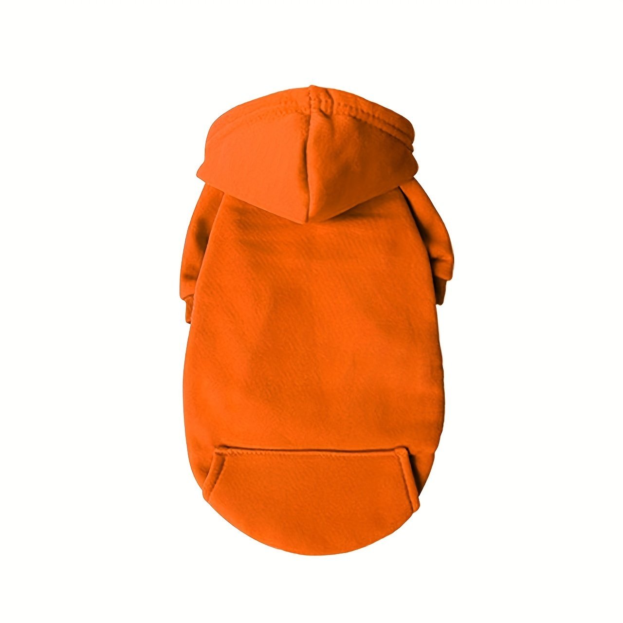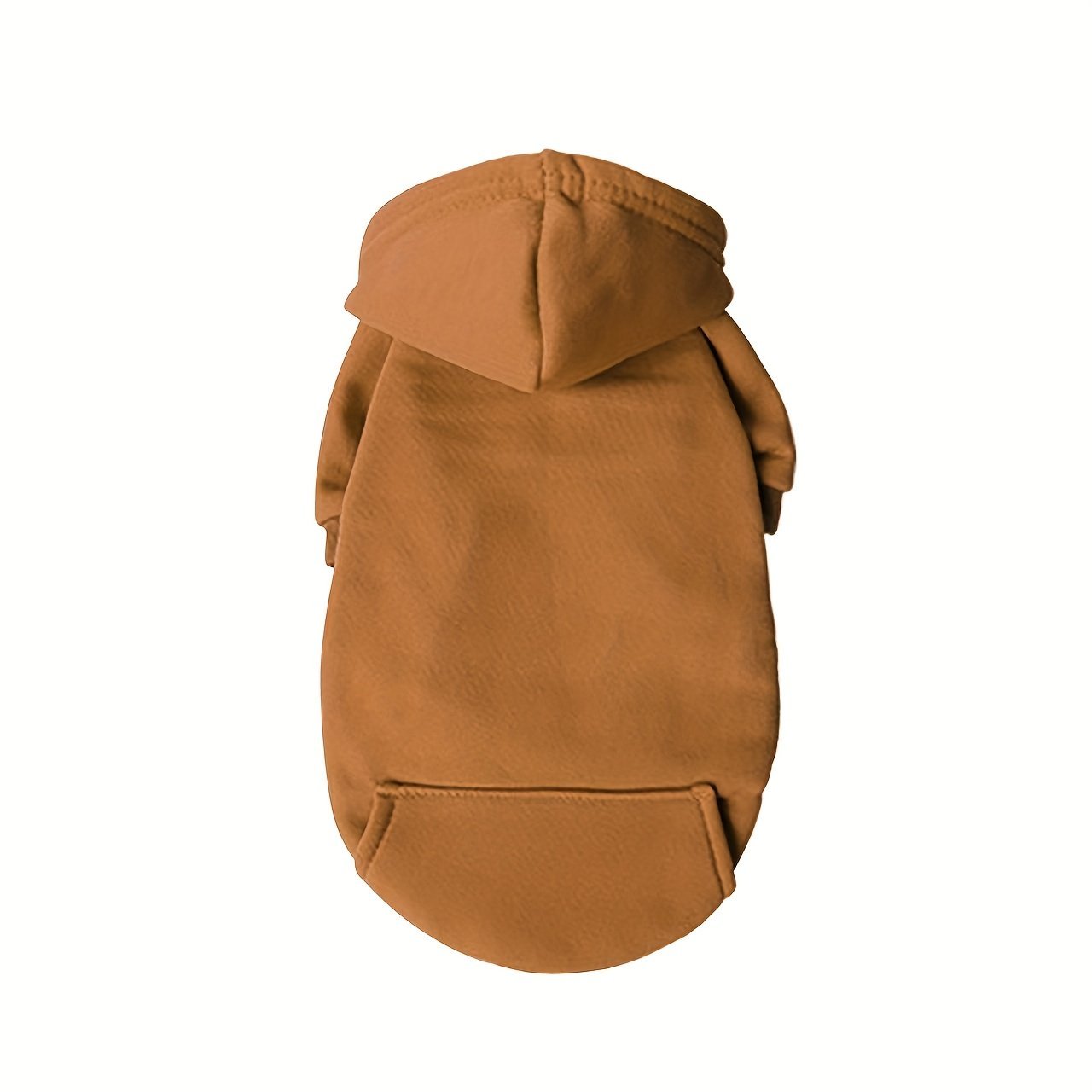 A cozy pet hoodie made of high-quality polyester, featuring a solid color hooded design and a convenient back pocket for small items. Perfect for keeping your furry friends warm and stylish during the autumn and winter seasons, whether indoors or outdoors.