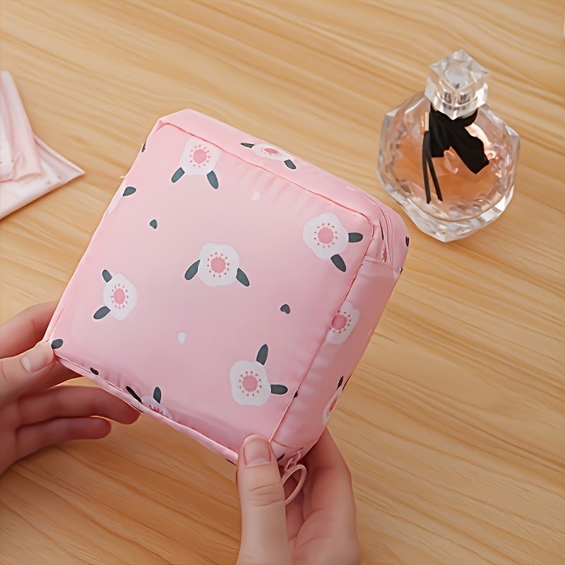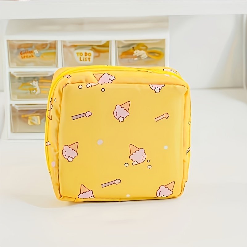 Creative Minimalist Sanitary Pad Storage Bag, Cartoon Print Swab Organizer, Multifunctional Travel High Quality Pouch, Cosmetic Storage Box, Toiletry Bag, Lipstick Case, Keychain Cable Organizer, Ideal Gift Choice