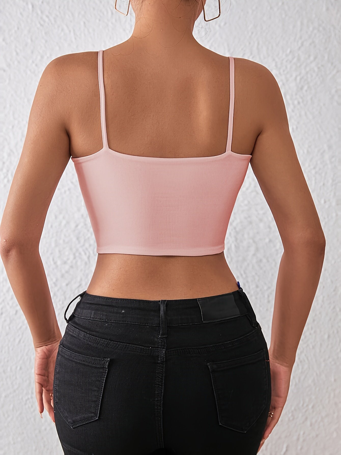 Crop Spaghetti Strap Top, Versatile Backless Cami Top For Summer, Women’S Clothing