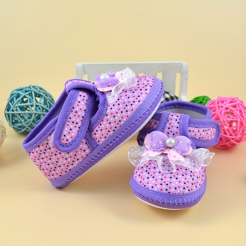 Cute Bowknot Polka Dot Sneakers For Baby Girls, Lightweight Non Slip Shoes For Indoor Outdoor Walking, Spring And Autumn