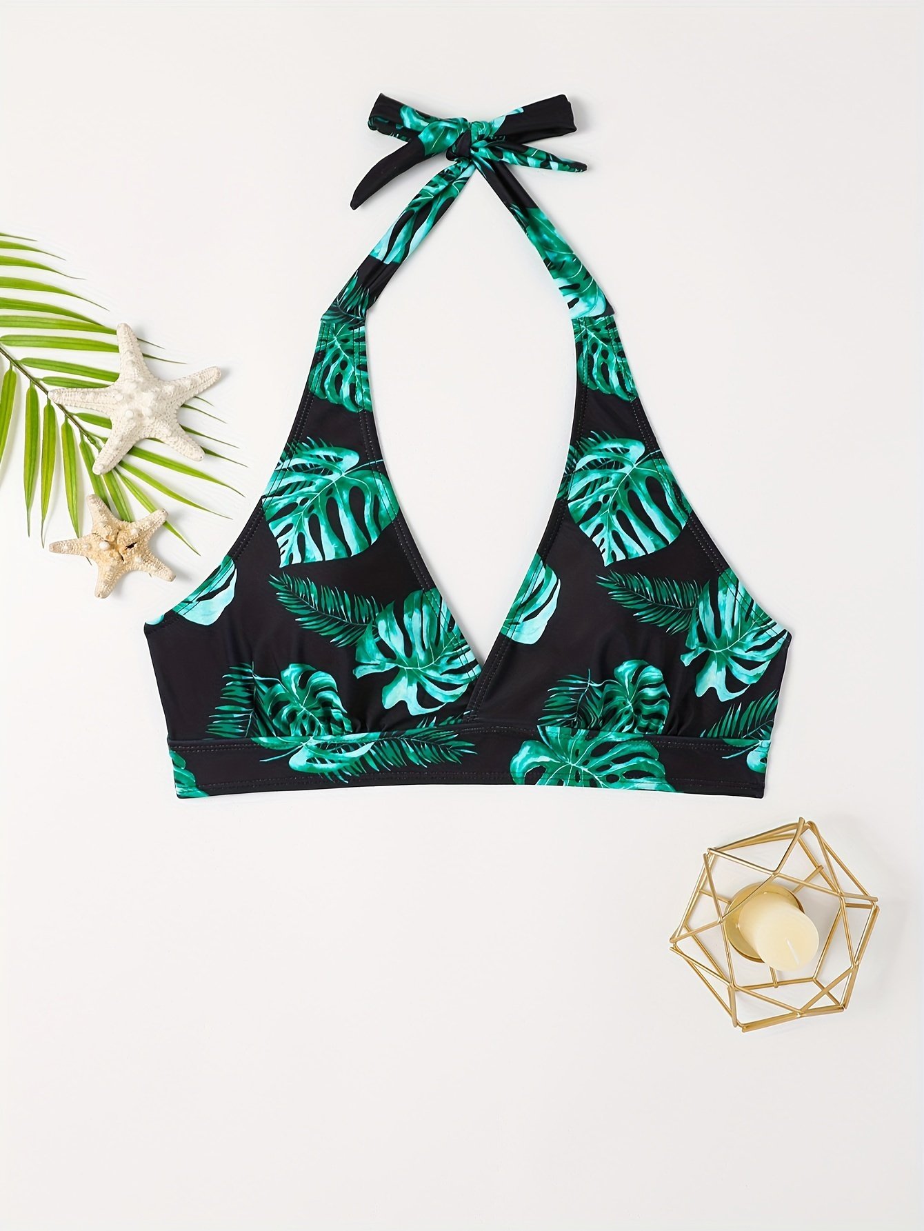 Deep V Neck Halter Tie Neck Bikini Top, Backless High Strech Stylish Swimsuit Top, Women’S Swimwear & Clothing