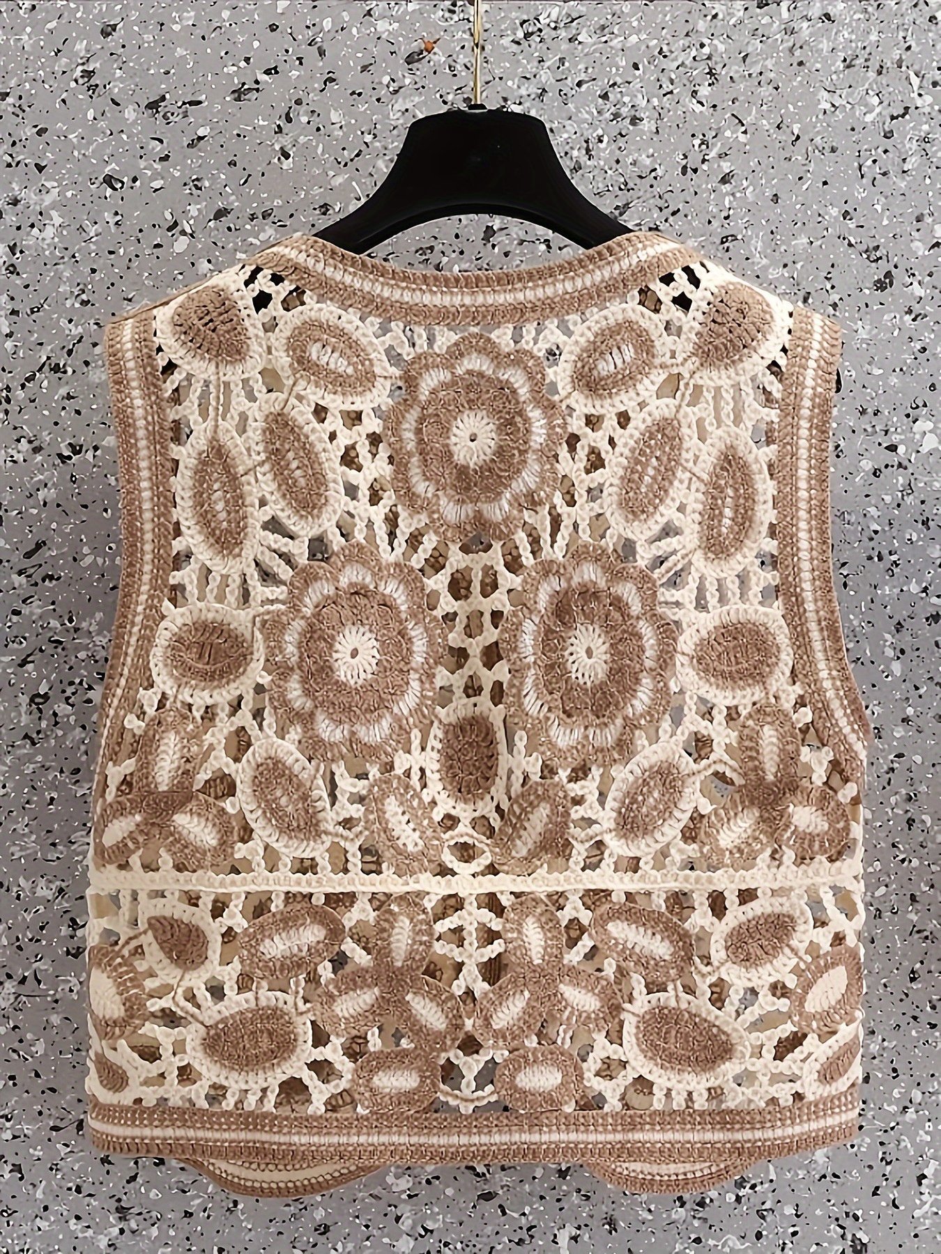 Elegant Bohemian Women’S Sleeveless V-Neck Vest – Chic Geometric Crochet Pattern, Lightweight Acrylic, Semi-Sheer Summer Casual Cover-Up, Hand Wash Only, Breathable Coverup, Intricate Craftsmanship, Beach Coverup, Boho Fashion, Delicate Weave, Sheer Top, Fashion Women