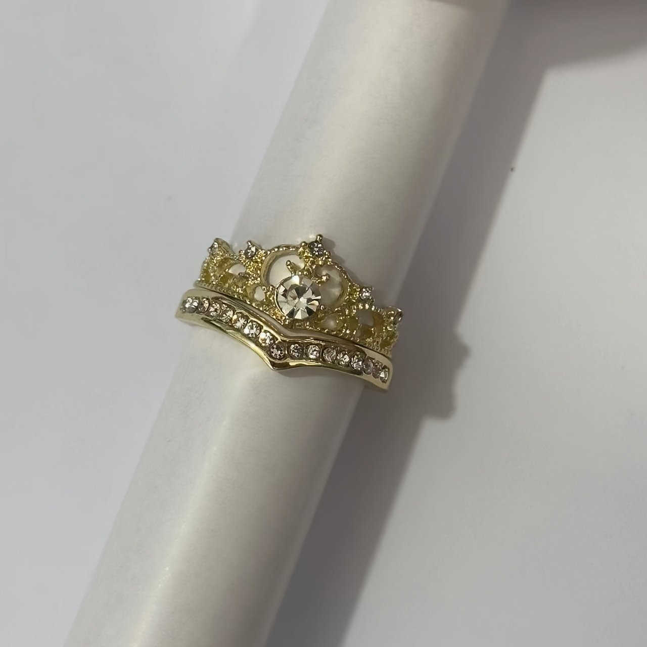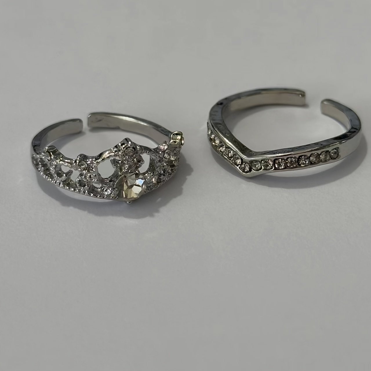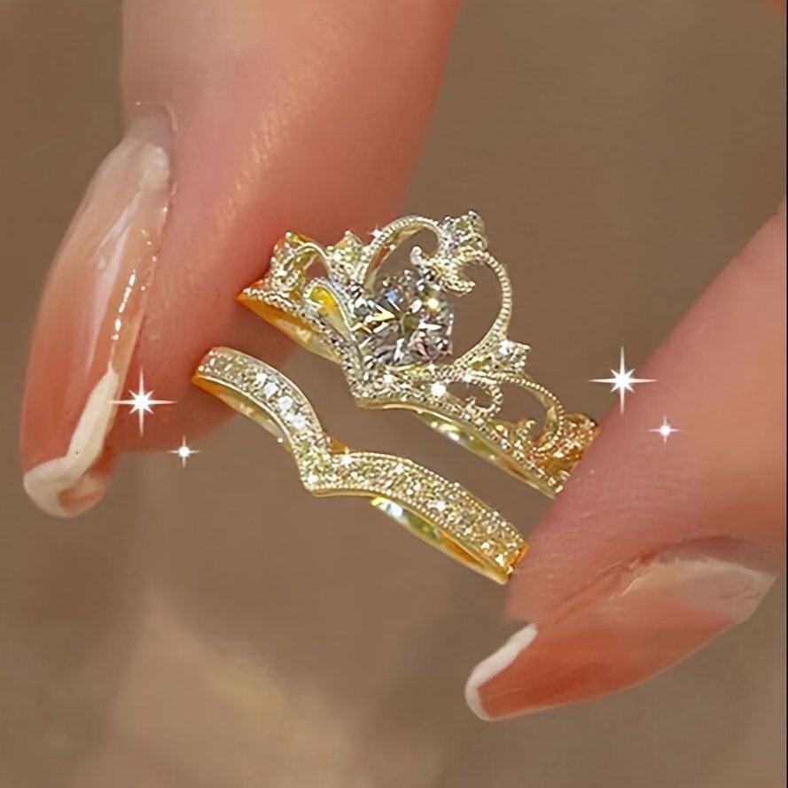Elegant Crown Princess-Inspired Rhinestone Ring Set, Adjustable Open-End Rings, Alloy Base With Plating, Cute Occasion Jewelry 2-Piece Set