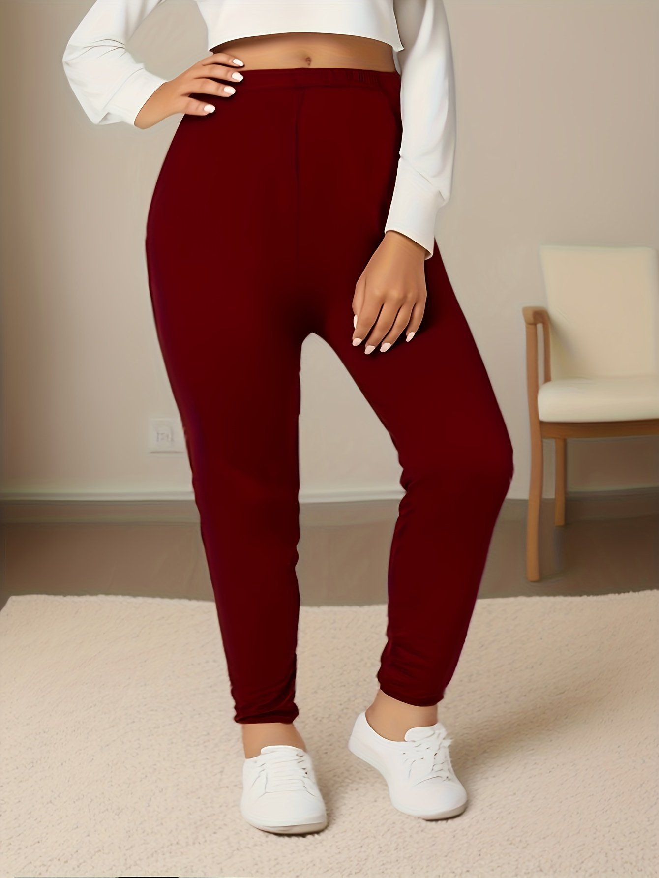 Elegant Plus Size High-Stretch Leggings – Solid Color, Casual & Fashionable For Running And Casual Attire