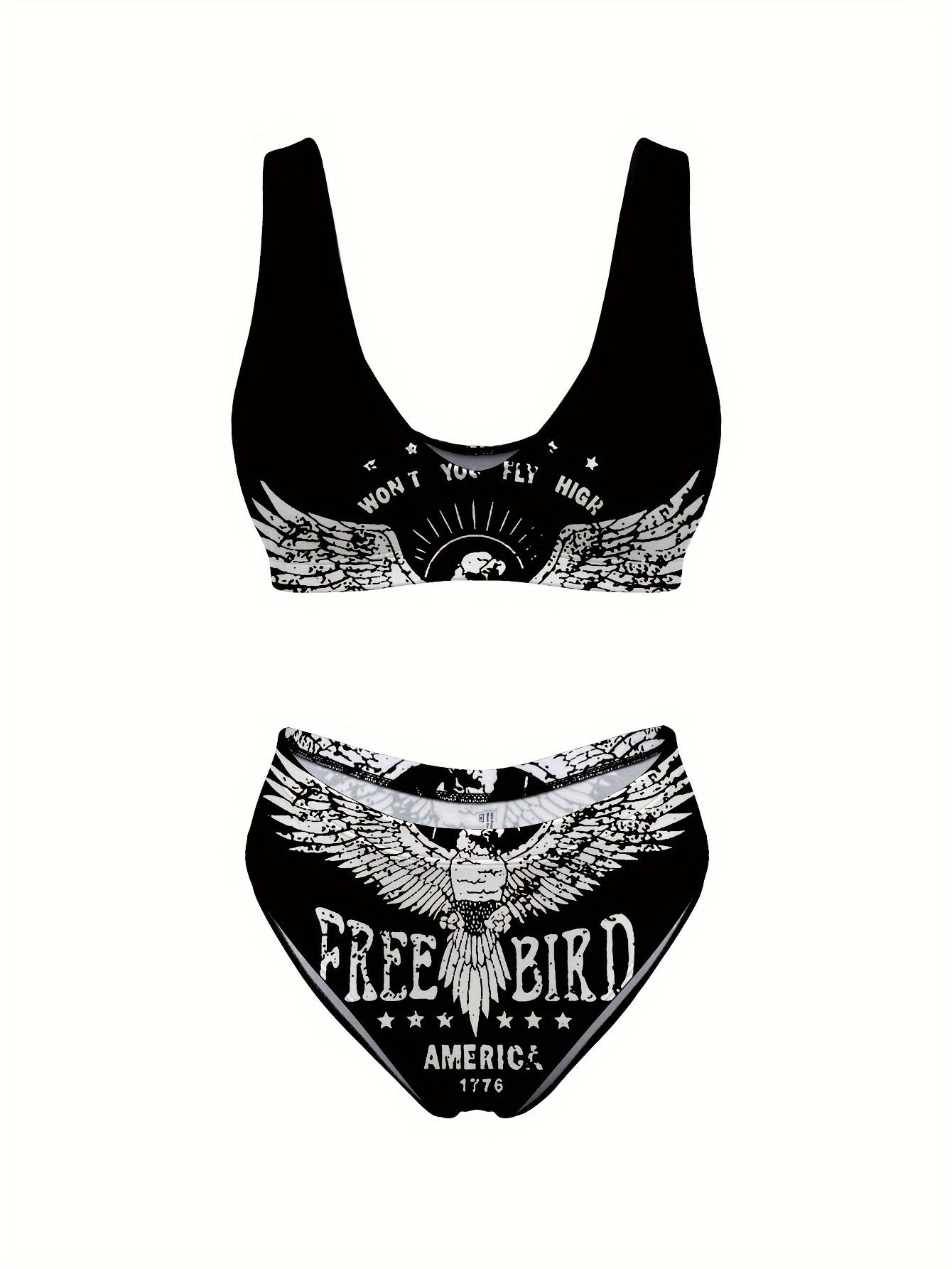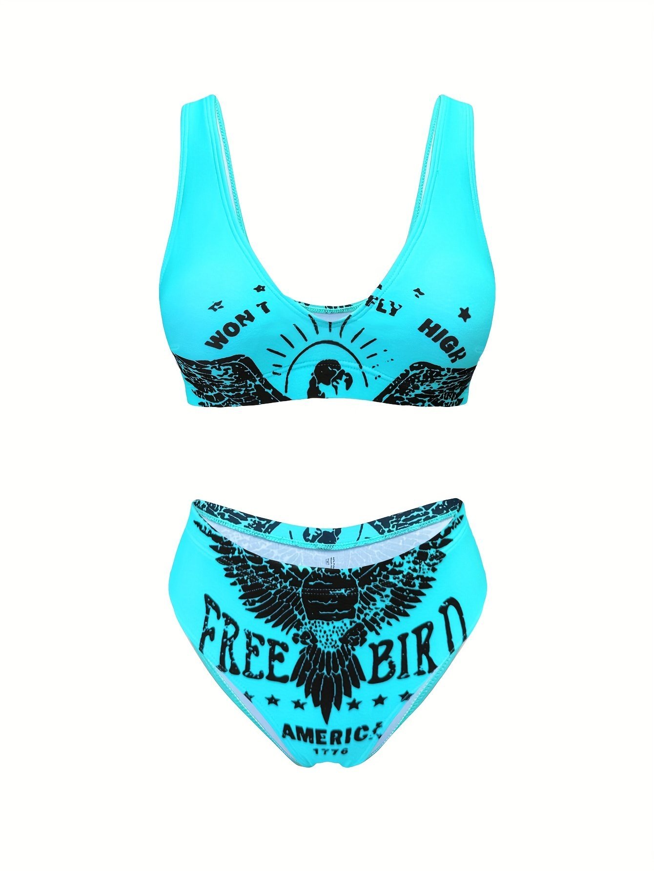 Factory Supply Fashionable Split Swimwear Women’S Letter Print Two-Piece Bikini Beach Swimsuit