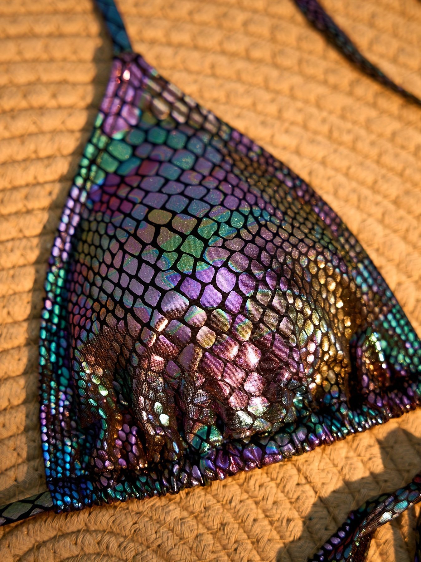 Fashionable And Sexy Bikini Set, High-End Snakeskin Fabric With Three-Dimensional High Cutting, Suitable For Beach Bathing, Sunbathing, Swimming, Essential