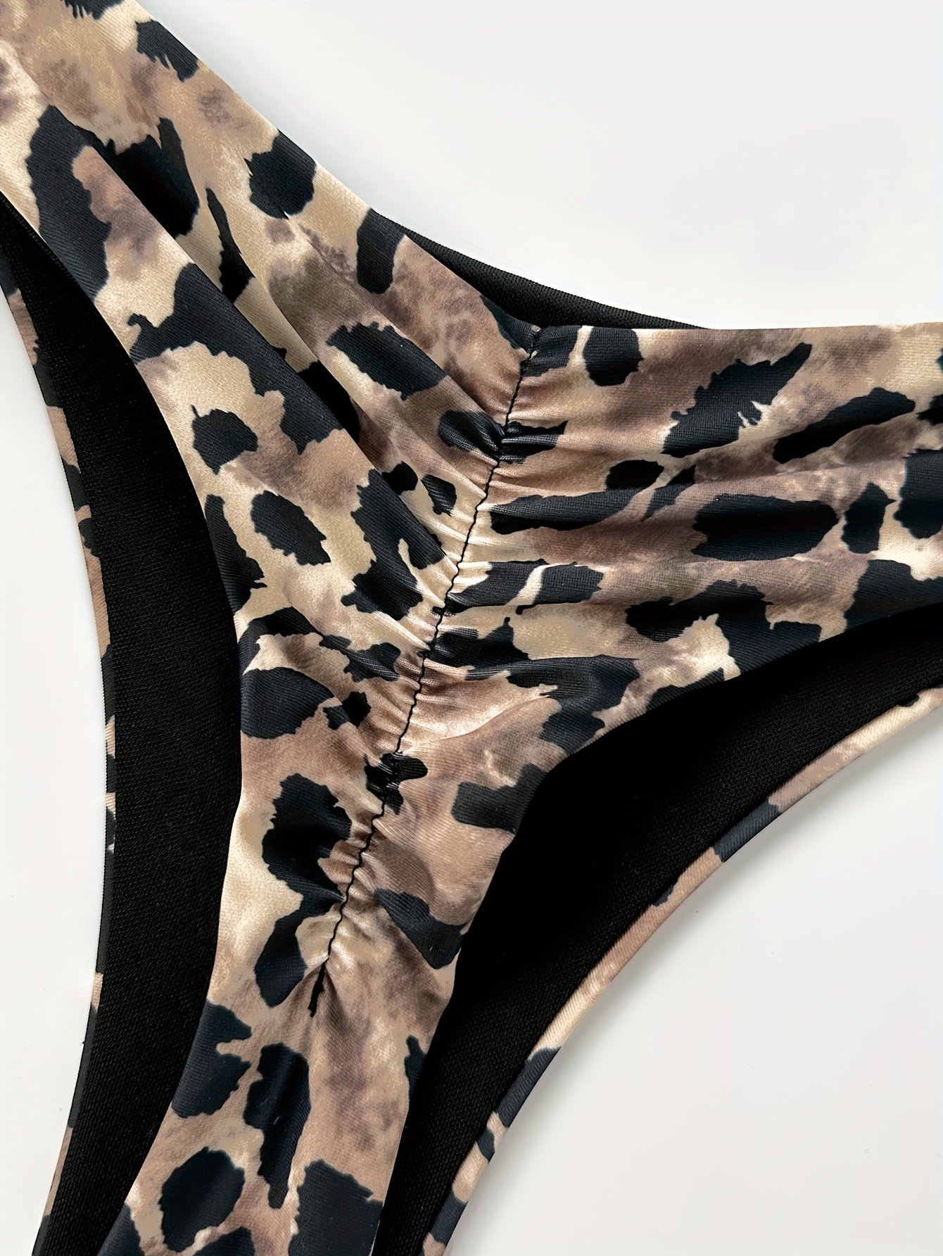 Fuba.Vi Women’S High-Waist Leopard Print Swim Bottoms – Sexy Bikini Swimsuit, Stretchy Polyester Fabric, Chic Poolside & Beachwear, Black & Brown/Pattern, Swimwear For Women