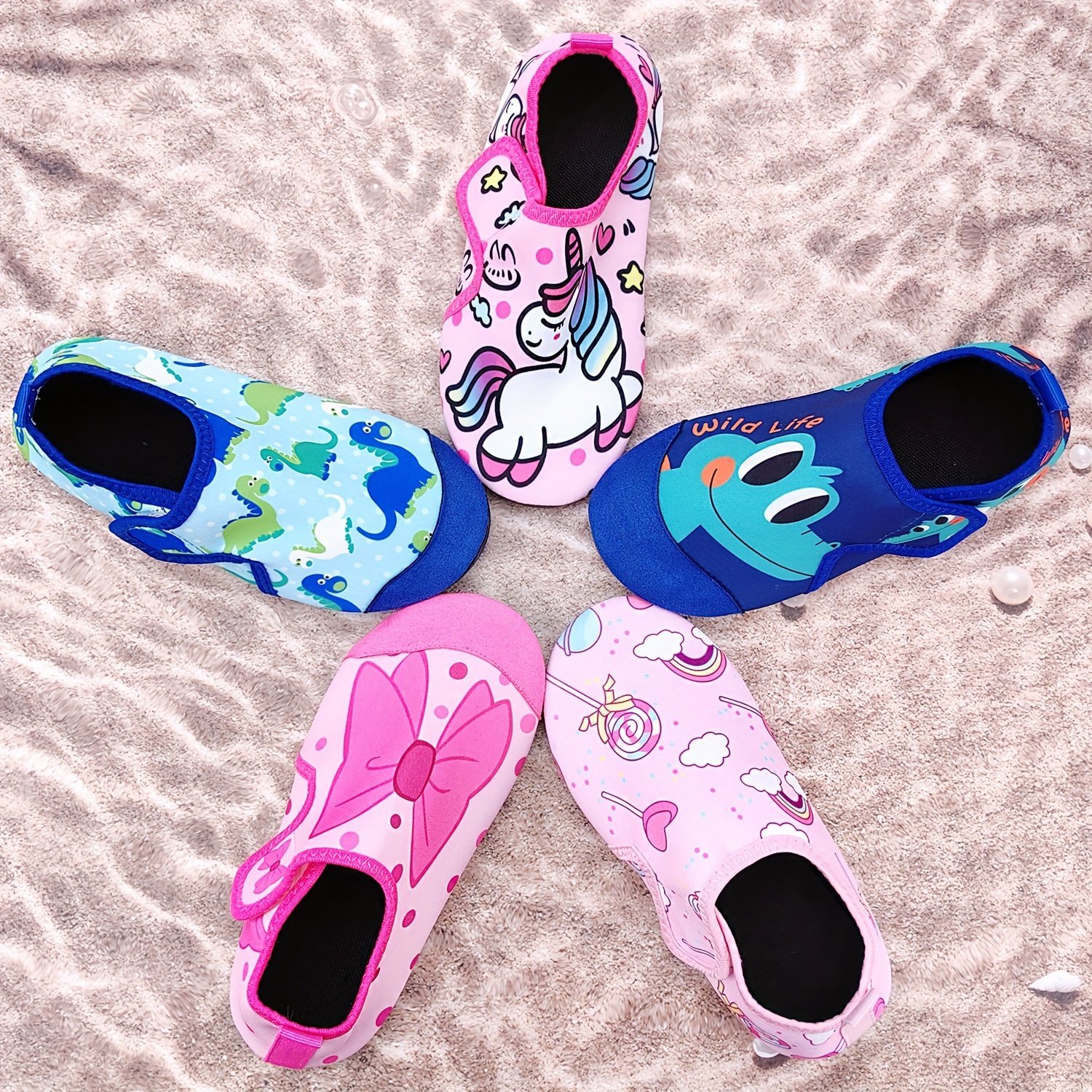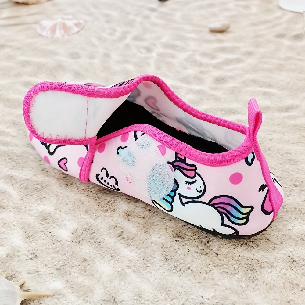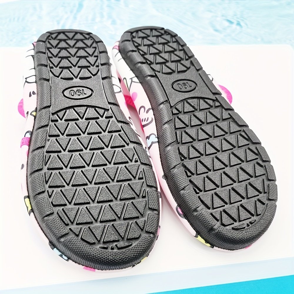 Girls Cartoon Print Summer Water Shoes, Lightweight Breathable, Quick-Drying, Fabric Upper, Fabric Insole, Tpr Sole, Without Lining, For Toddlers, All-Season, 14 And Under, Thick