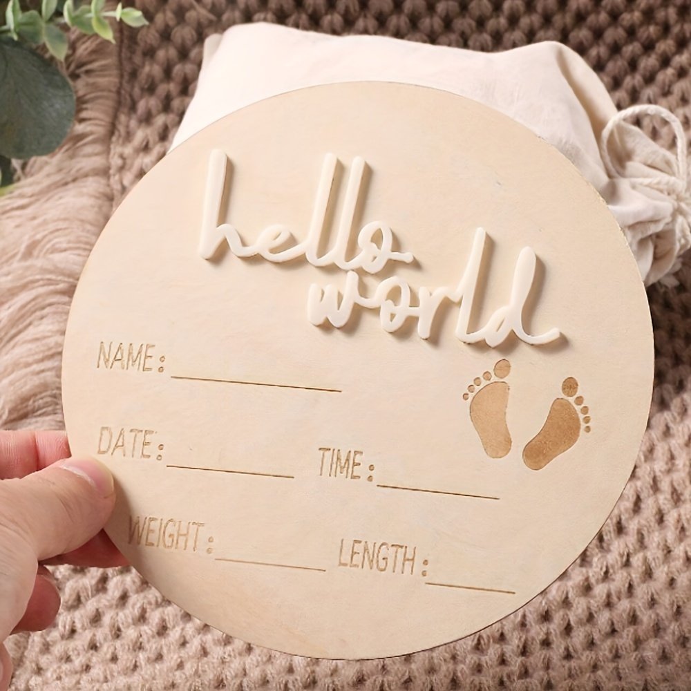 “Hello World” Wooden Milestone Sign: Personalized Baby’S First Year Keepsake