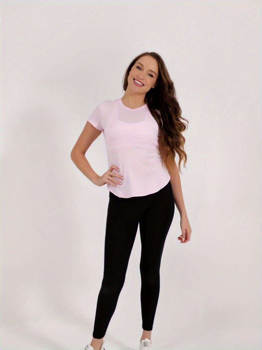 Hollow Breathable Mesh Stitching Letter Tape Casual Sports T-Shirt, Summer Running Fitness Short Sleeve Top, Women’S Activewear