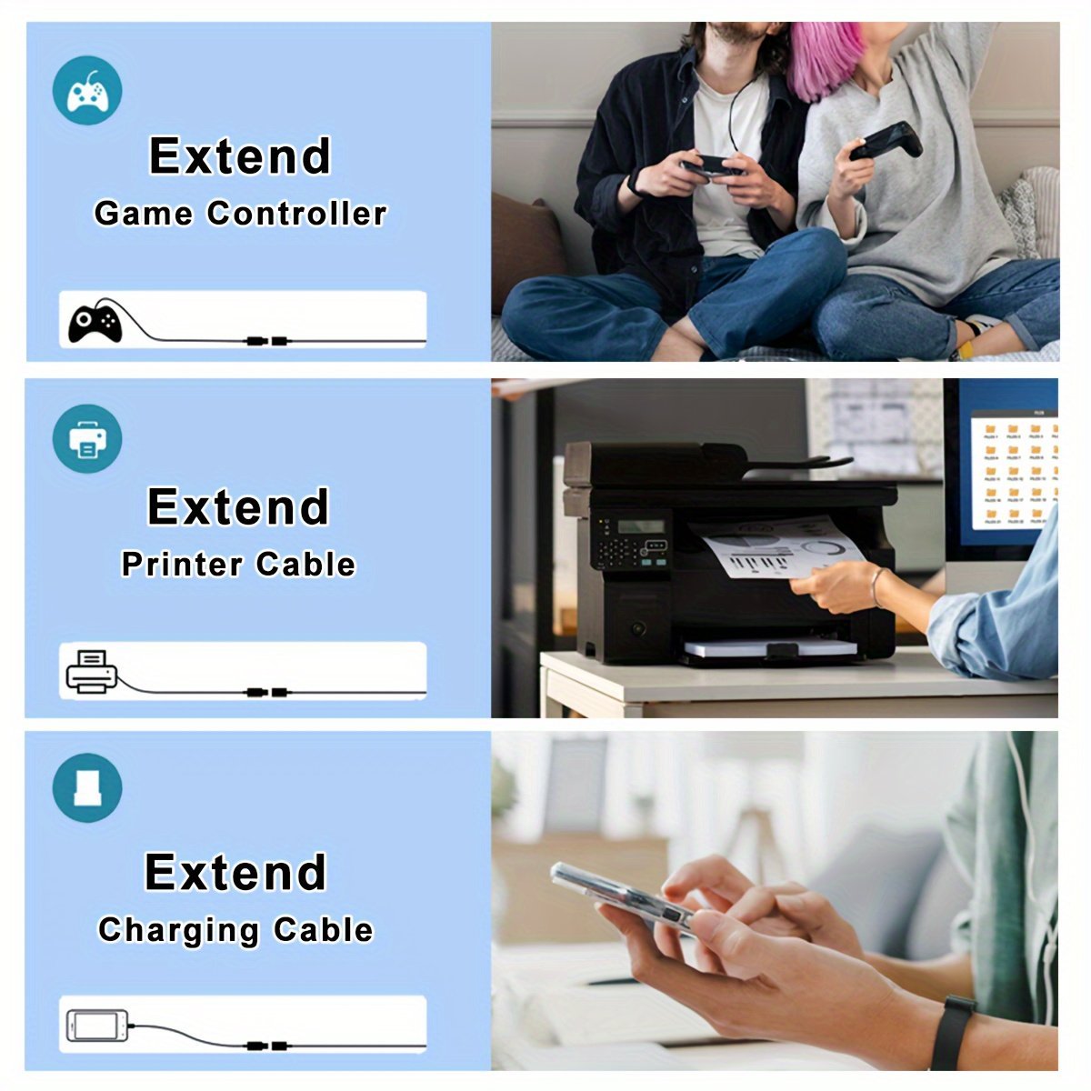 USB Extension Cable, USB 2.0 Connector Cable, air-free Copper USB Male To Female Extension Cable, Type A Male to A Female High Speed Data Transfer Extension Cord for USB Flash Drive, Hard Drive, Printer, Webcam