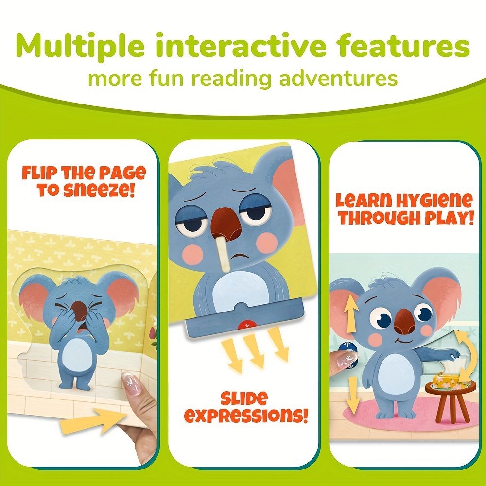 Koala’S Sneeze And Sniffle, A Preschool Habit-Building Interactive Book, Cultivates Good Hygiene Habits, Independent Operation Skills, Fun Mechanical Design For Hands-On Ability Training, Gift, Travel Activities For Kids, Airplane Travel Activities For Kids, Christmas & Birthday Present