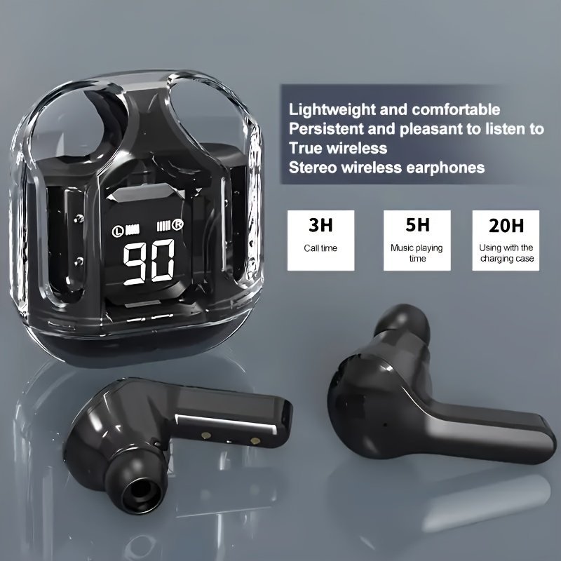 Lan Xun New Wireless Earphones With Ultra-Long Battery Life Sports Game Mini Dual Stereo In-Ear Universal Earbudstransparent Wireless Earbuds Wireless 5.3 Headphones With Enc Noise Canceling Earphones, Hifi Dual Stereo Microphone Mini In-Ear Earbuds With Charging Case And Led Digital Display Sports Headset