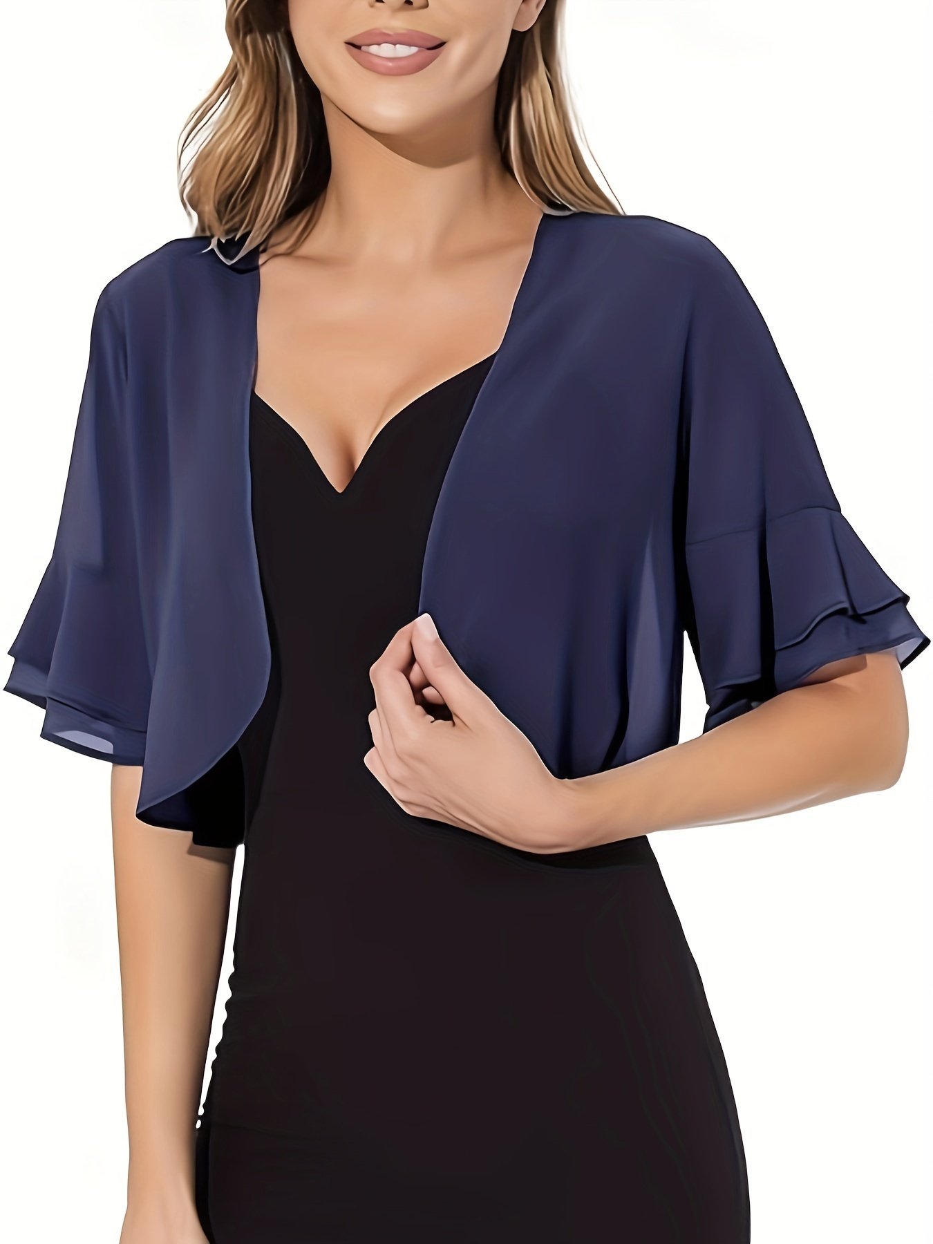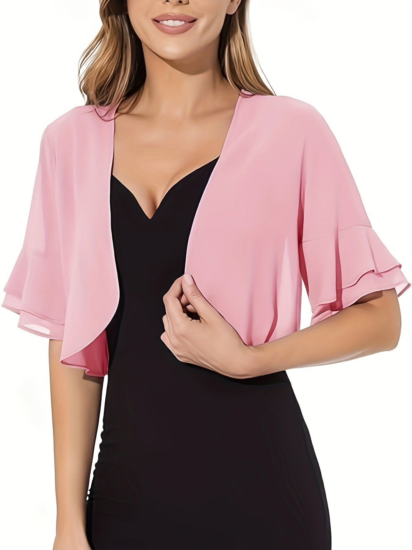 Layered Flare Sleeve Crop Blouse, Versatile Open Front Blouse For Spring & Summer, Women’S Clothing