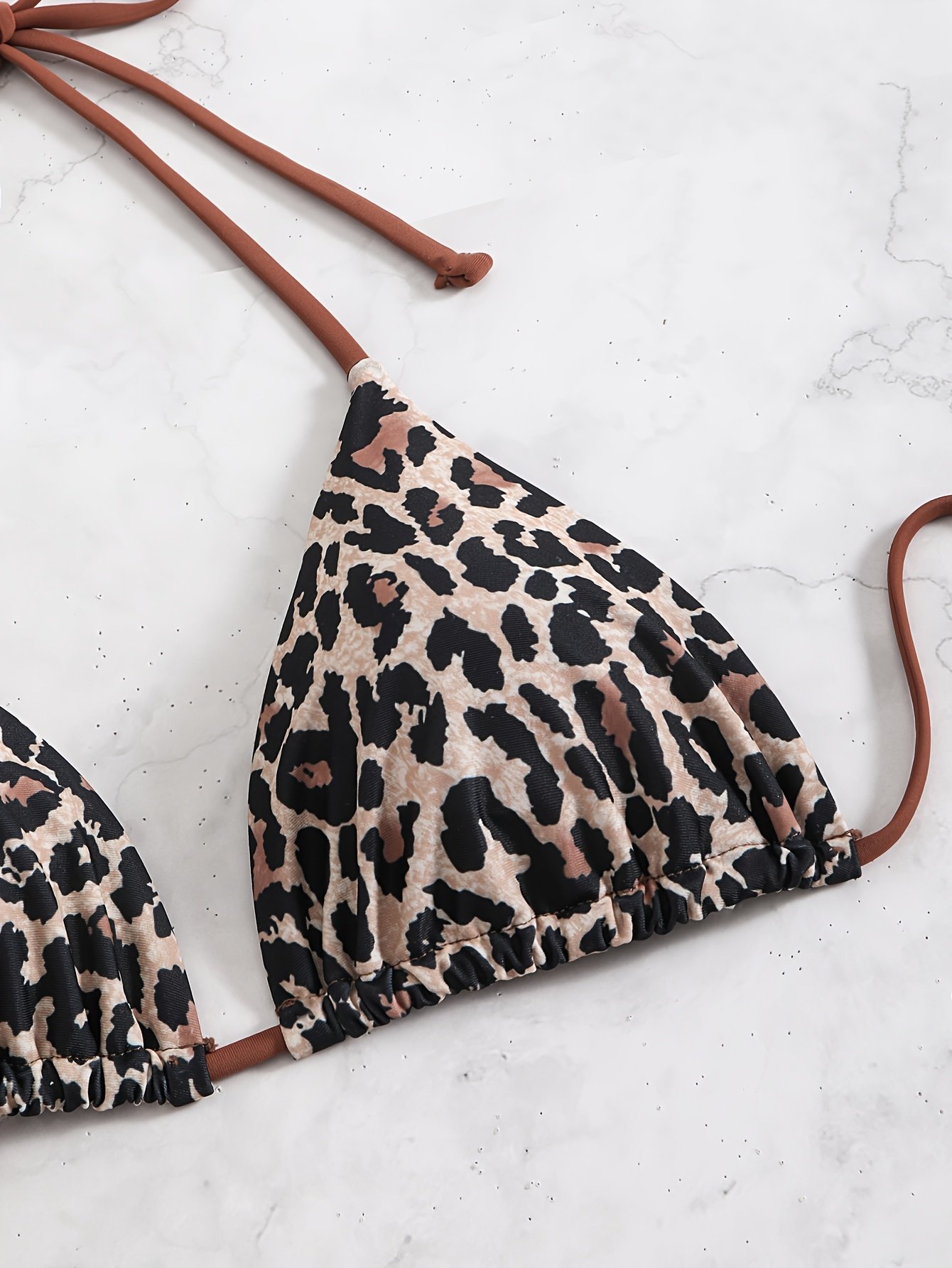 Leopard Print Triangle Halter Tie Strap Backless Sexy Bikini Top, Women’S Swimwear & Clothing