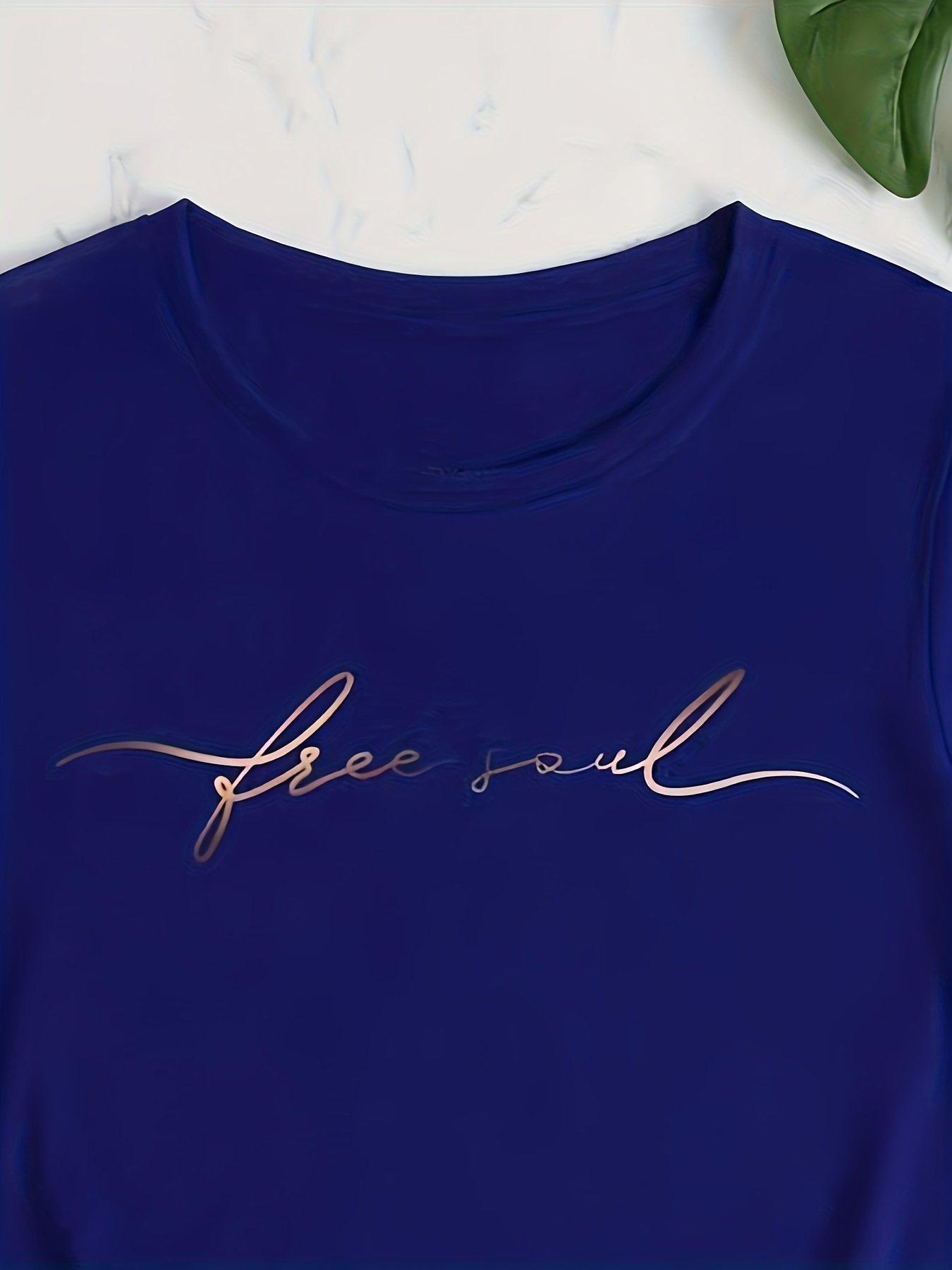 Letter Print T-Shirt, Casual Short Sleeve Crew Neck Top For Spring & Summer, Women’S Clothing