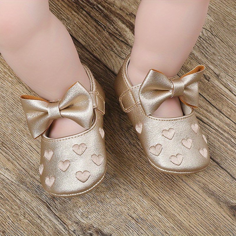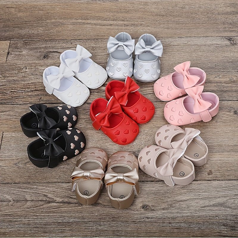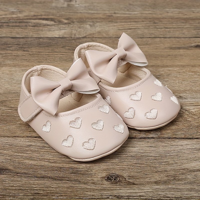 Magic Prewalker Baby Girls’ First Walkers Shoes – Cute Ballet Princess Design With Heart Embroidery & Bow Decor, Non-Slip Closure, Breathable, Soft Fabric Lining For Spring & Autumn (White/Black/Red/Pink)