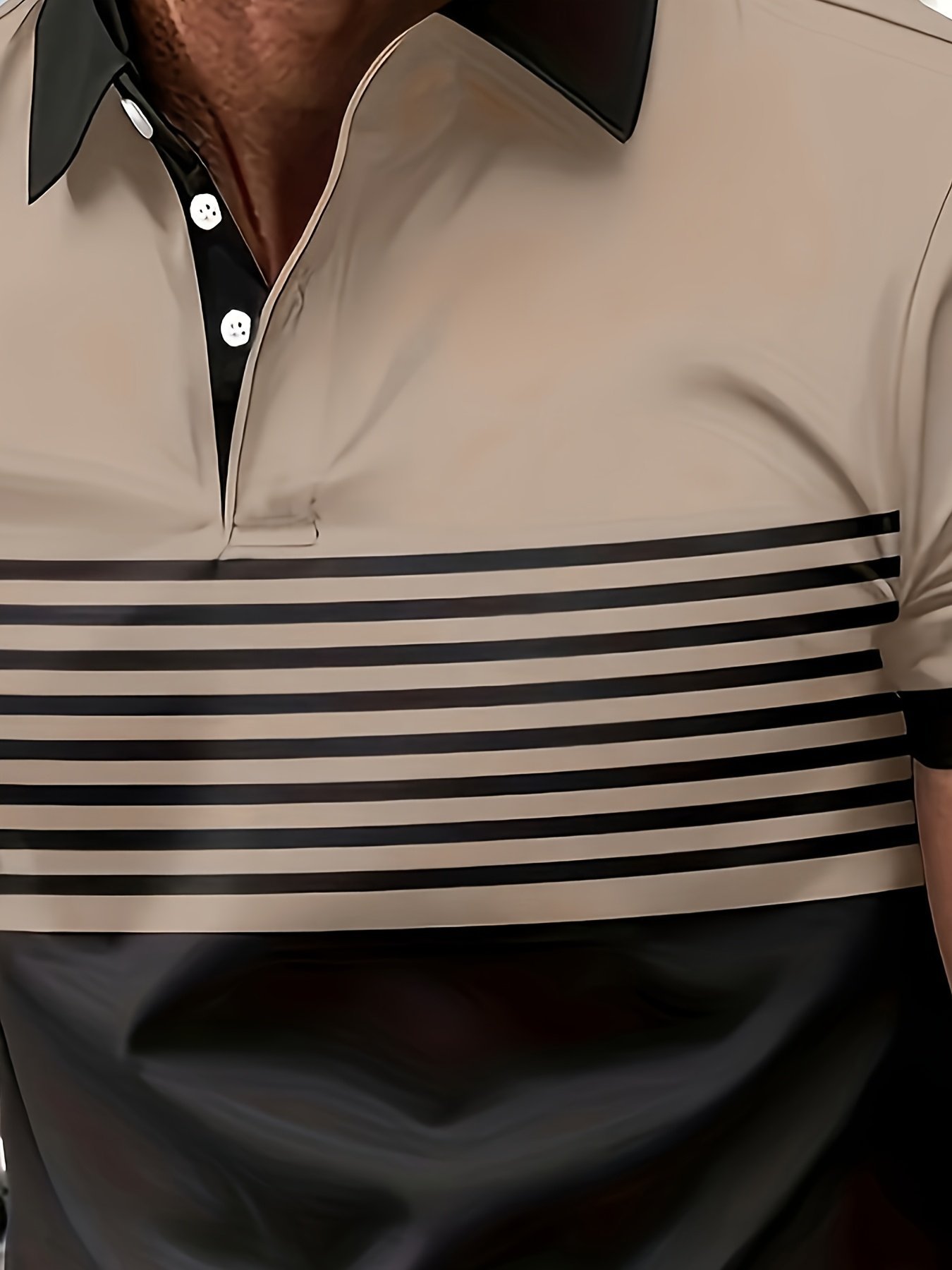 Men’S Casual Fashion Short Sleeve Shirt With Geometric Color Block 3D Print – Lightweight Polyester Blend, Ideal For Golf And Summer Streetwear, Outdoor Clothing|Contemporary |Spandex Elasticity, Plus Size