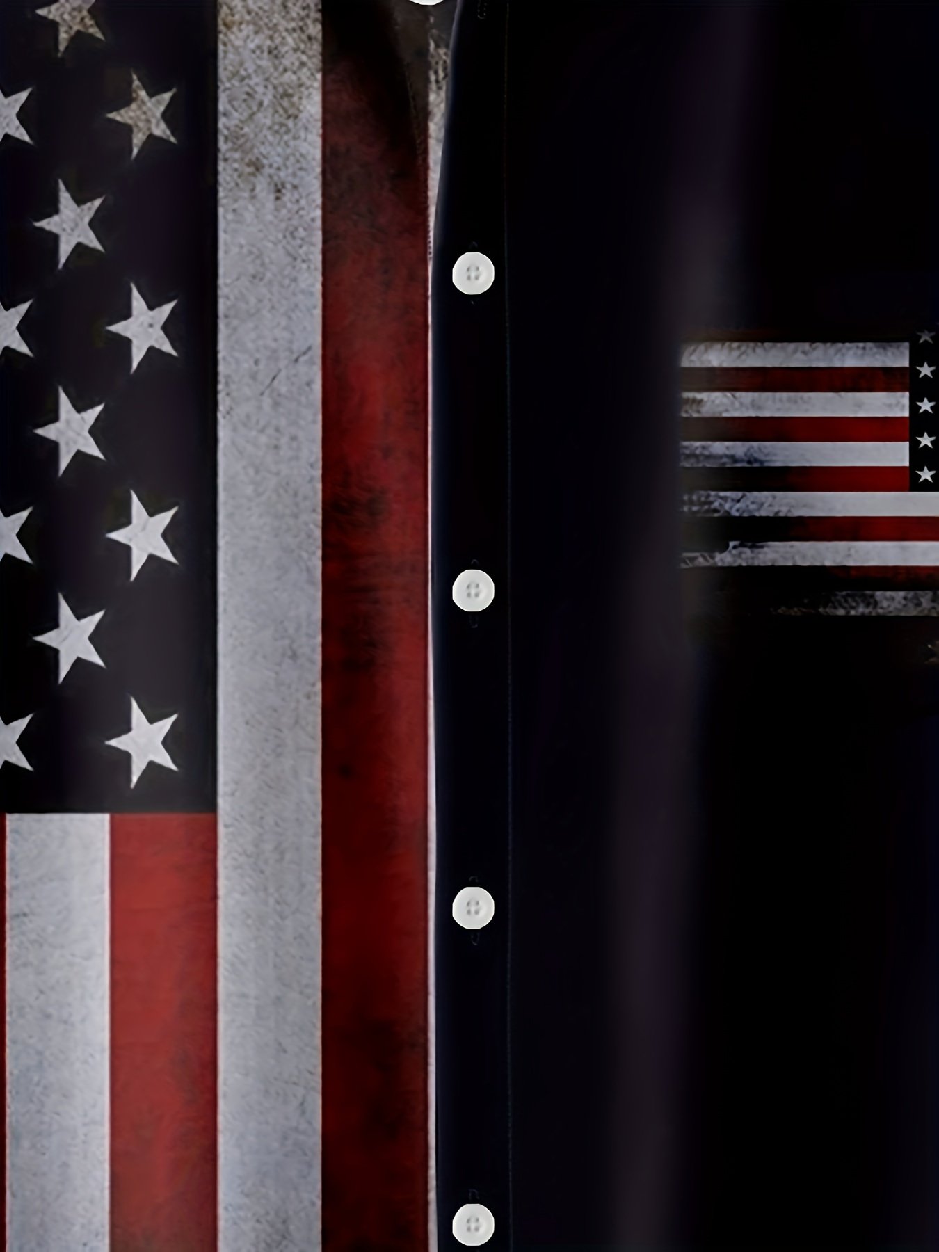 Men’S Casual Polyester Shirt With American Flag Print, Button Front, Lapel Collar, Regular Fit, Woven Fabric, Spring/Summer Top – 100% Polyester, 110Gsm, Plus Size