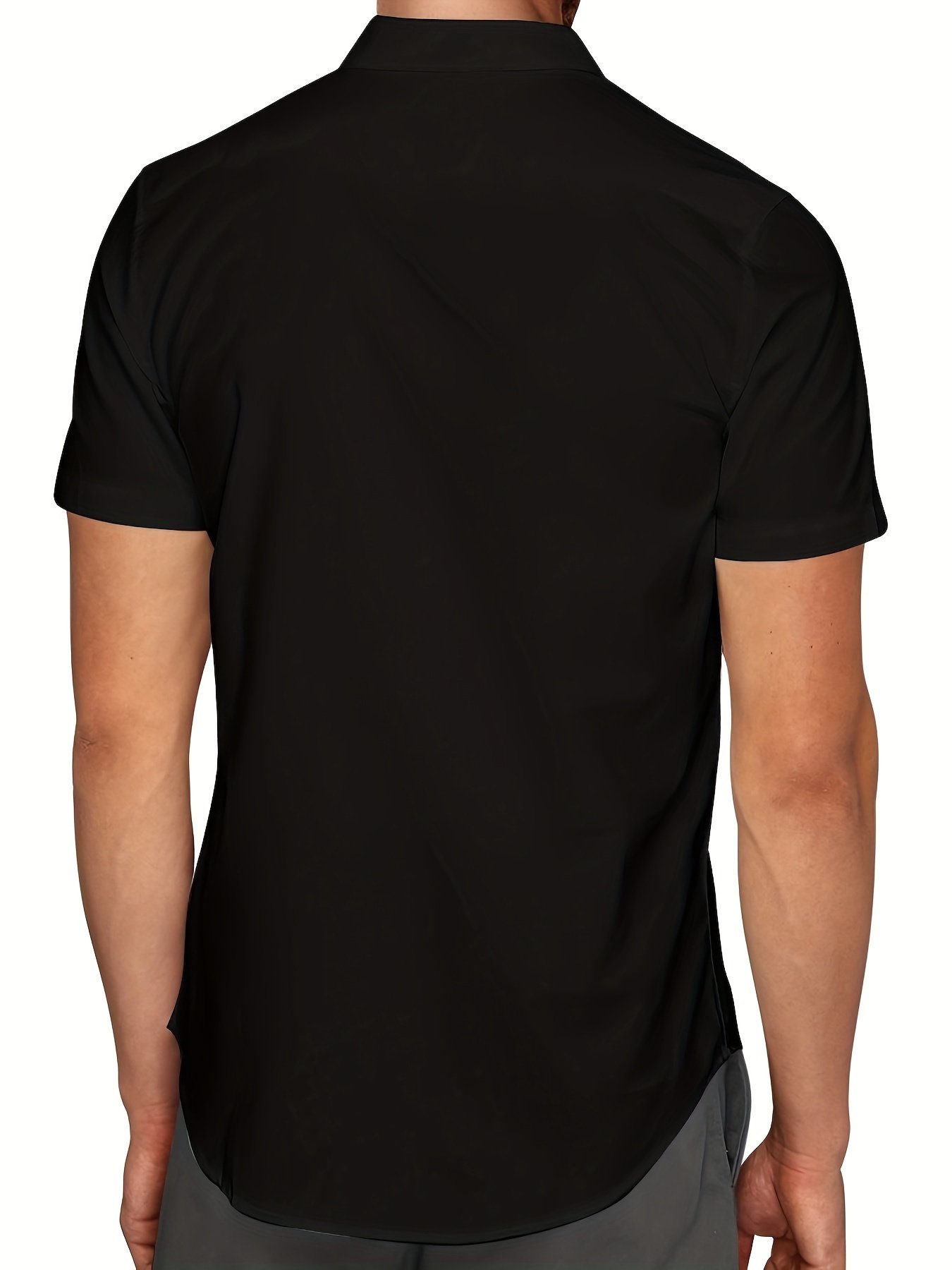 Gentle Care Men’S Plus Size Solid Color Button- Shirt – Polyester, Lapel Collar, Short Sleeve Dress Blouse With Chest Pocket, Allseason Apparel | Solid Color Top | Simple Design, Plus Size