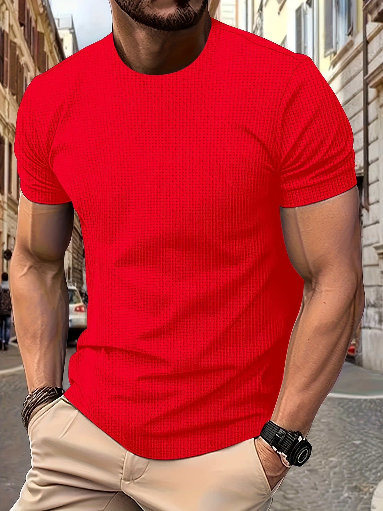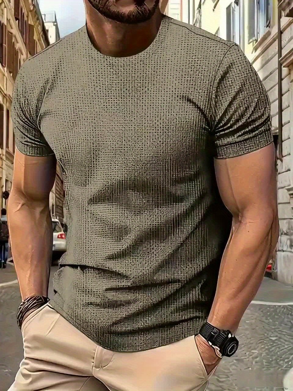 Men’S Casual Solid Color Round Neck T-Shirt