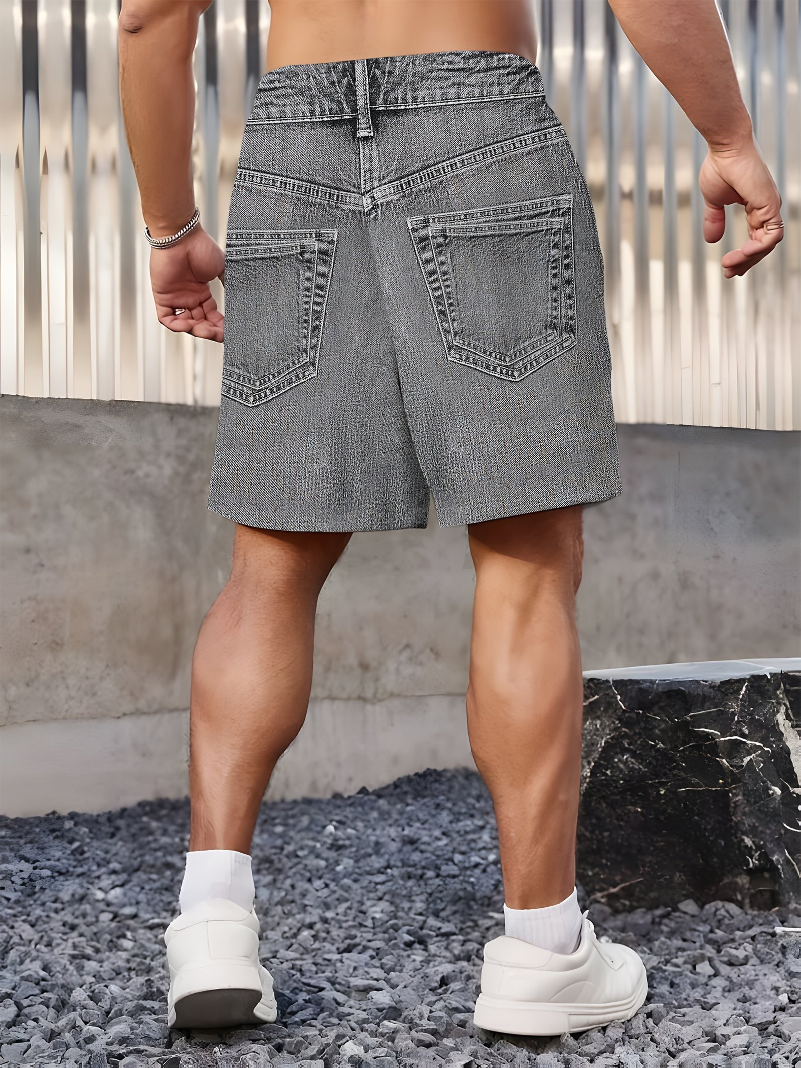 Men’S Casual Stylish Visual Illusion Faux Denim Patterned Digital Print Shorts, Plus Size