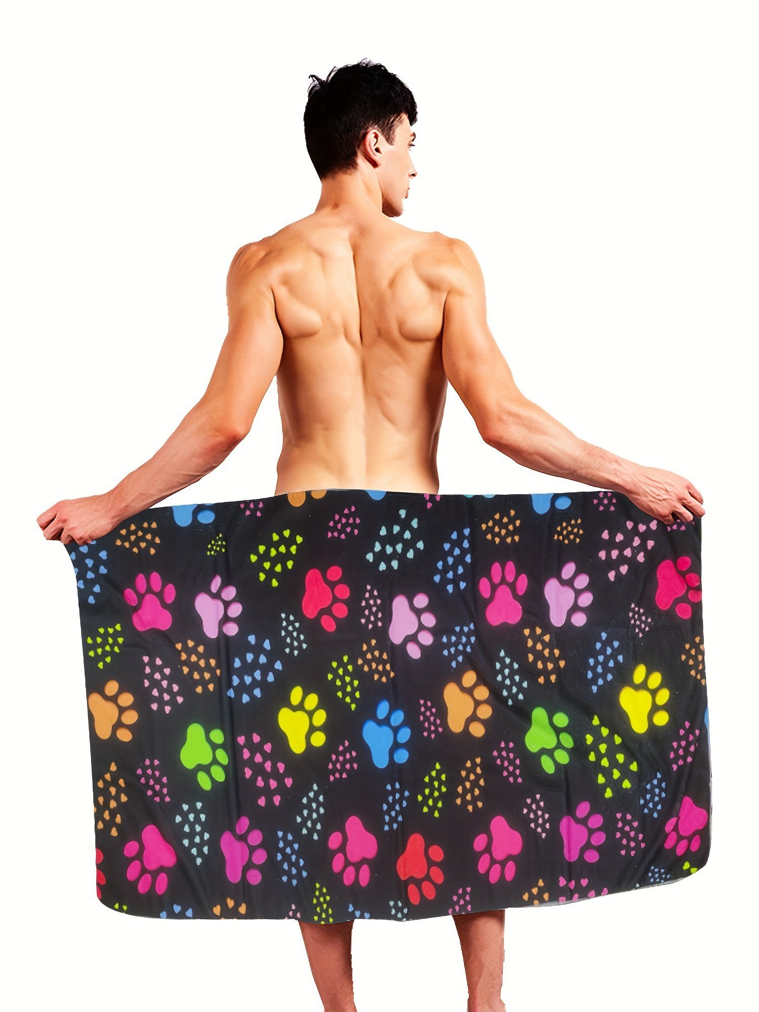 Men’S Fun Pattern Wearable Bathrobe, Soft Absorbent Toiletries, Casual Nightwear For Bathing And Lounging