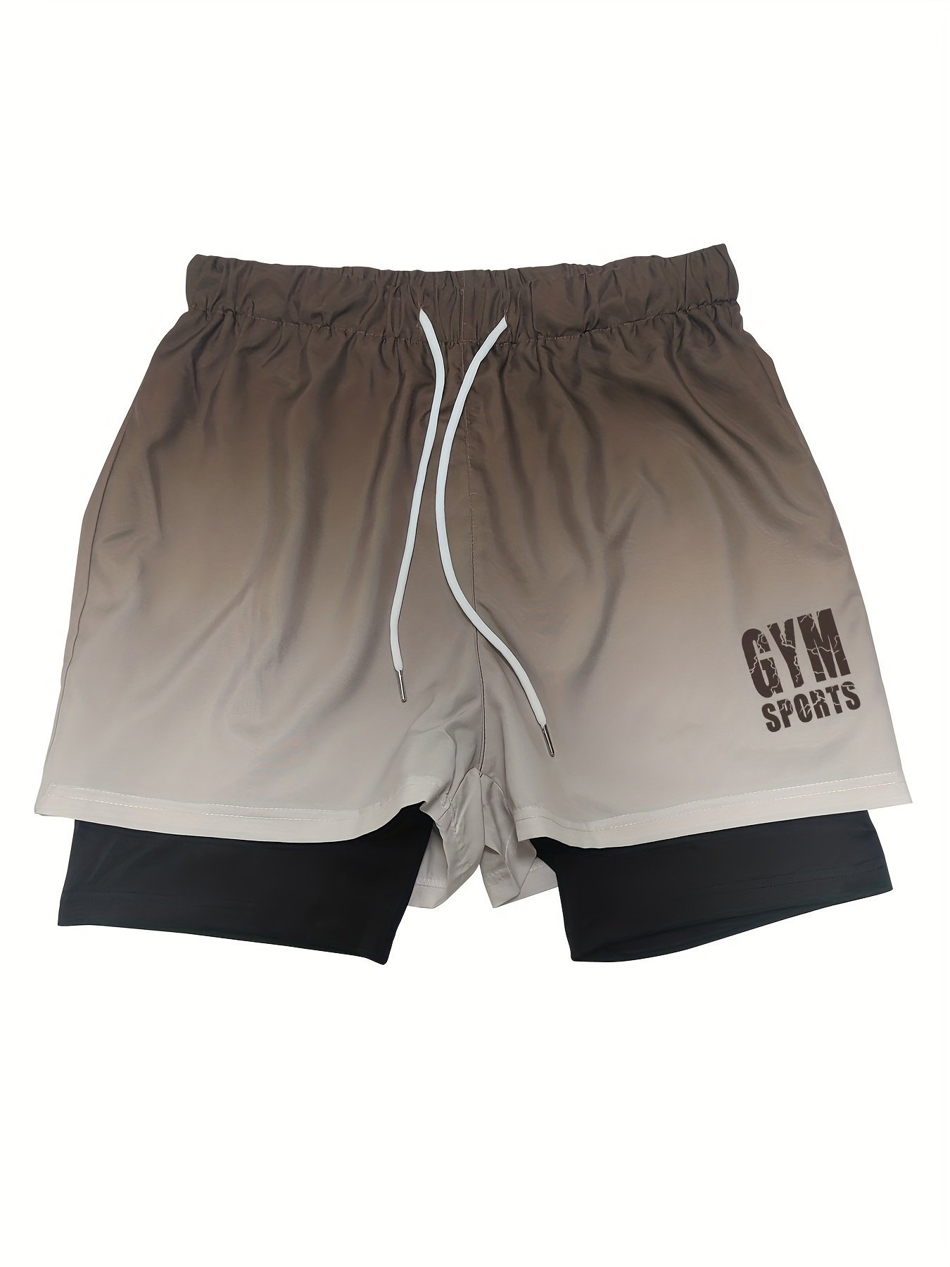 Men’S Gradient Athletic Shorts – Summer Outdoor Sports, Adjustable Drawstring Waist, Breathable Mesh Lining, Black To Gray With “No Fear No Limits” Design, Comfortable For Active Wear