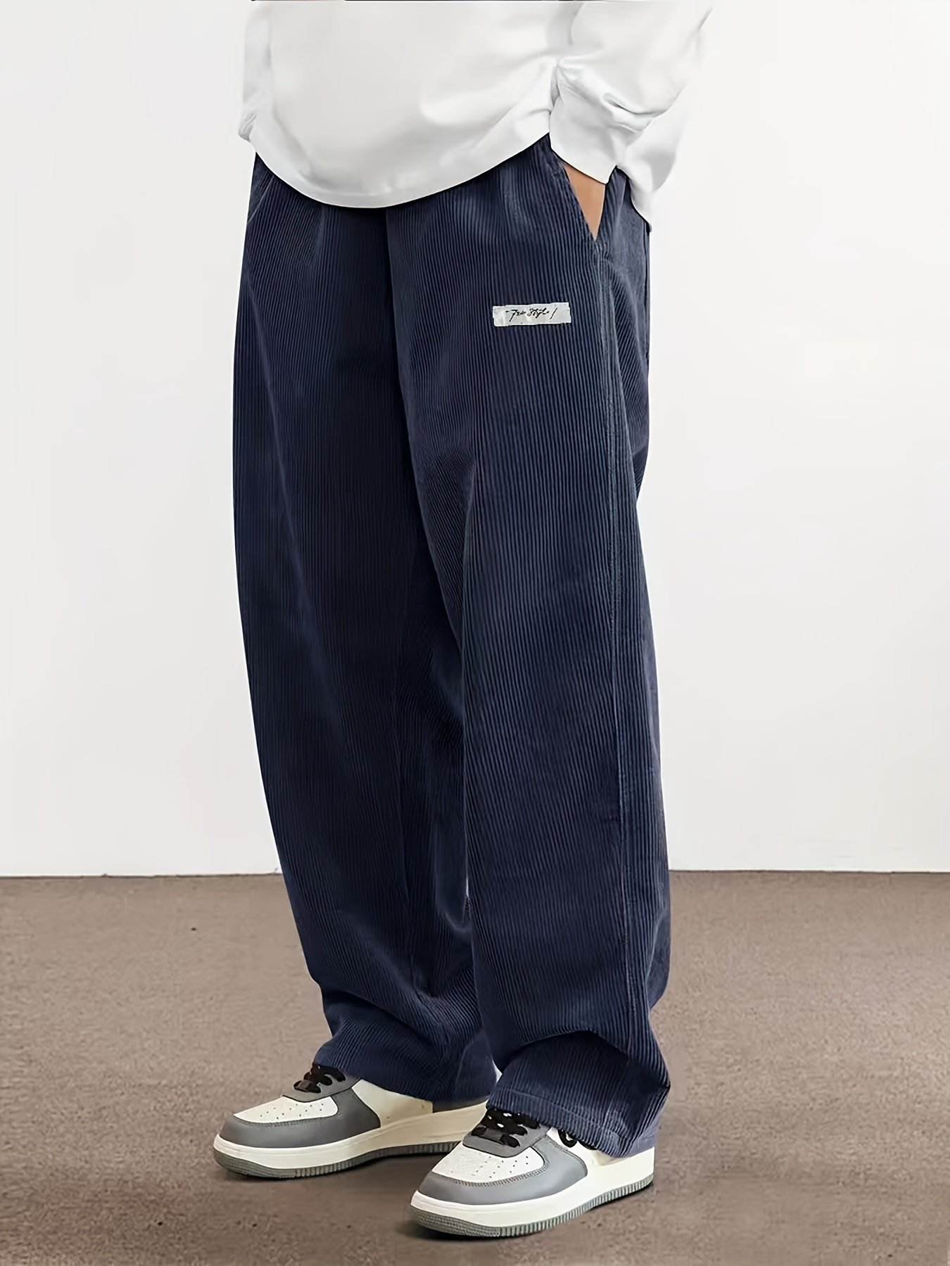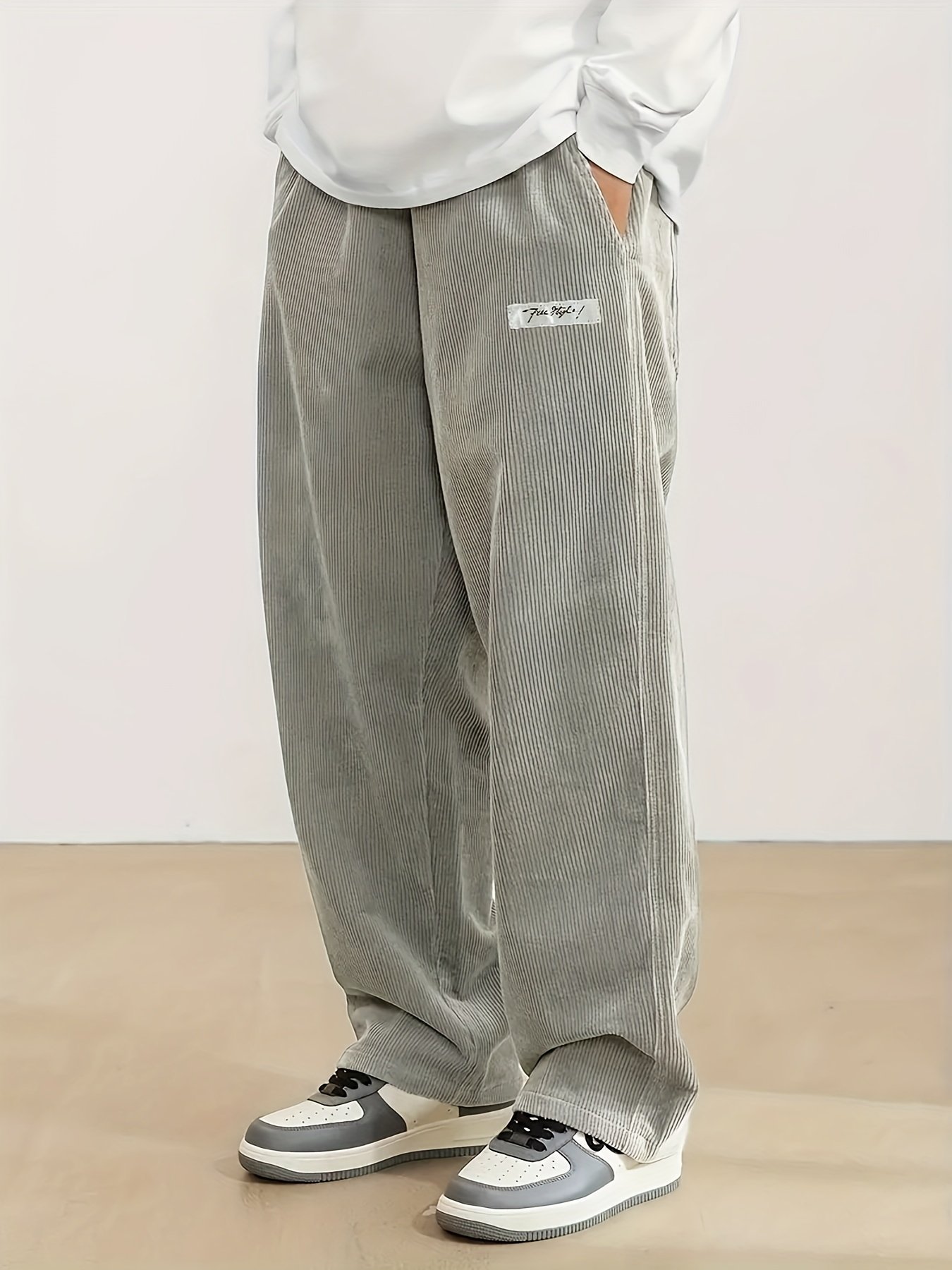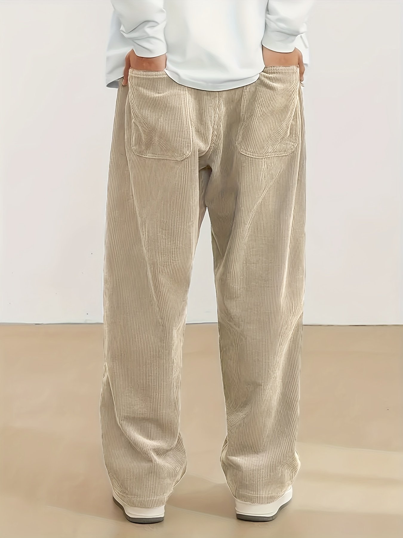 Men’S Loose Corduroy Casual Pants With Pockets In Solid Colors, Breathable Straight-Leg Drawstring Trousers Suitable For Urban Streetwear And Outdoor Activities, Embodying A Relaxed Style.