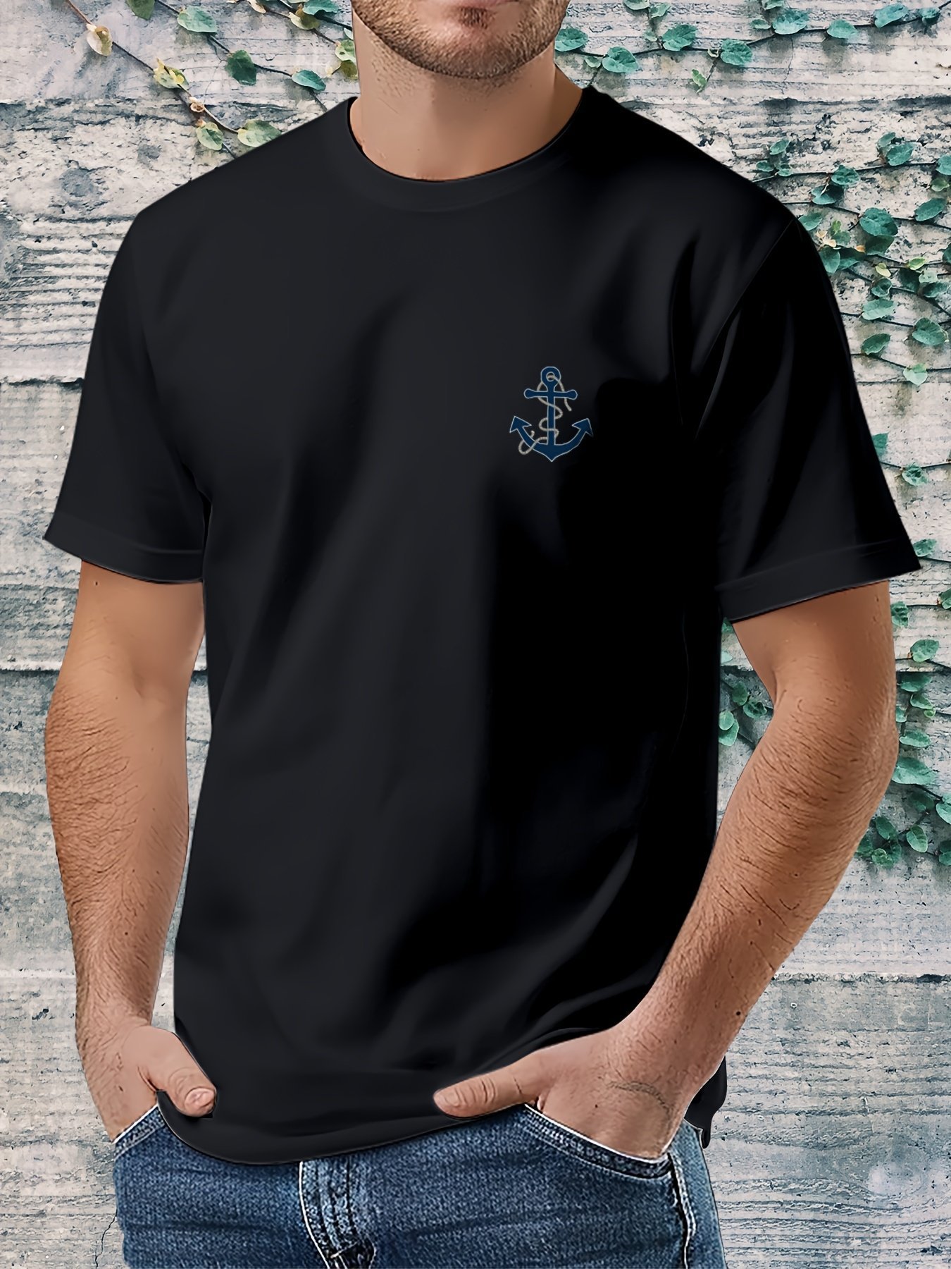 Men’S Nautical Anchor Graphic T-Shirt – Light Green Maritime Tee, Regular Fit Casual Shirt For Everyday & Nautical Themes – Breathable Everyday Essential, Nautical T Shirts, Classic Round Neck, Comfortable Fabric, Short Sleeve Top, Outdoor Enthusiasts, Weekend Wear, Minimalist Design, Soft Material, Print Tee, Outdoor Lovers