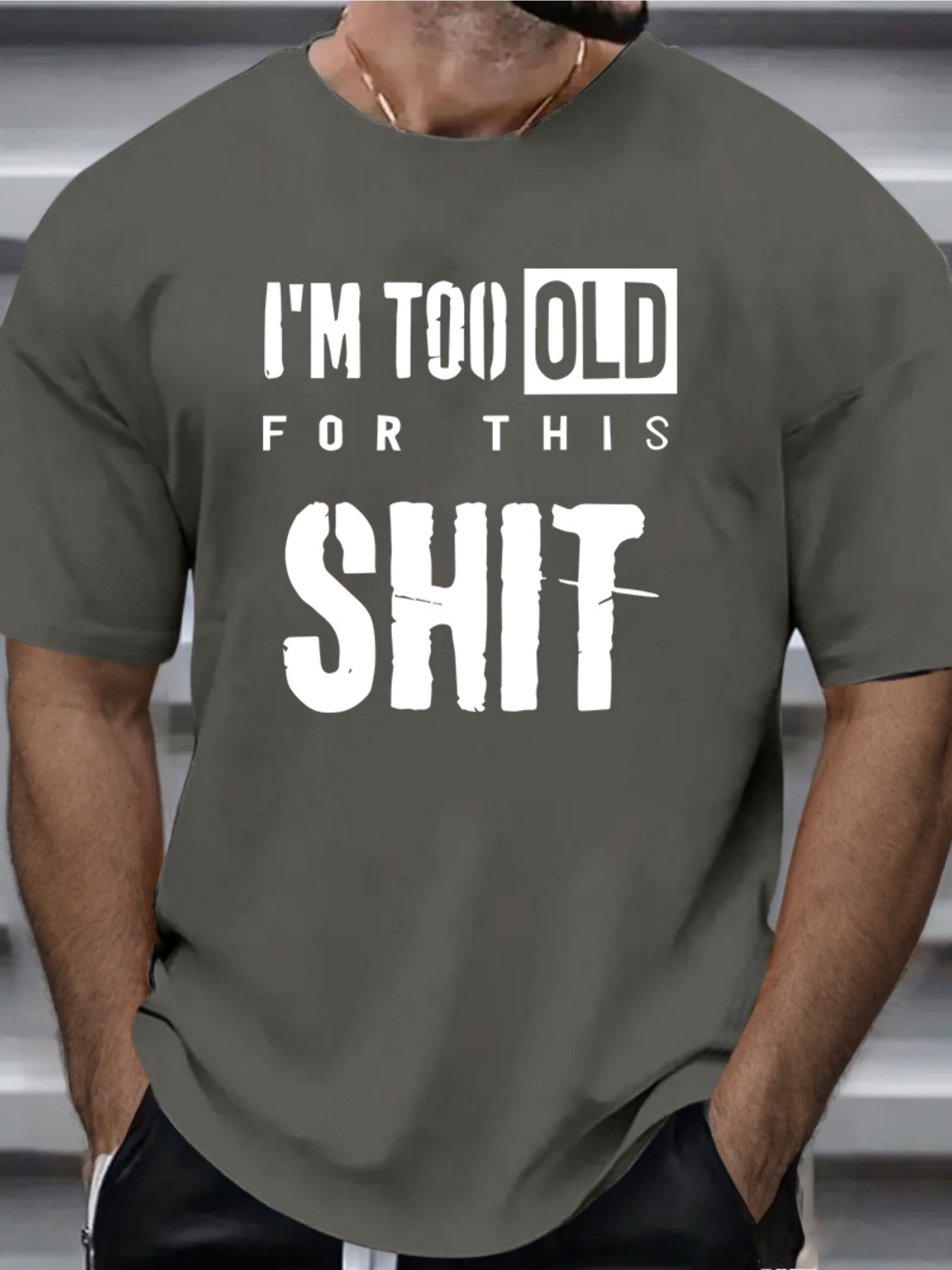 Men’S Oversized Funny Slogan T-Shirt – “I’M Too Old For This Shit” Bold Print, White With Black Lettering, Loose Fit Casual Summer Tee, Round Neck Short Sleeve Shirt For Adults, Machine Washable Humor Apparel, Plus Size
