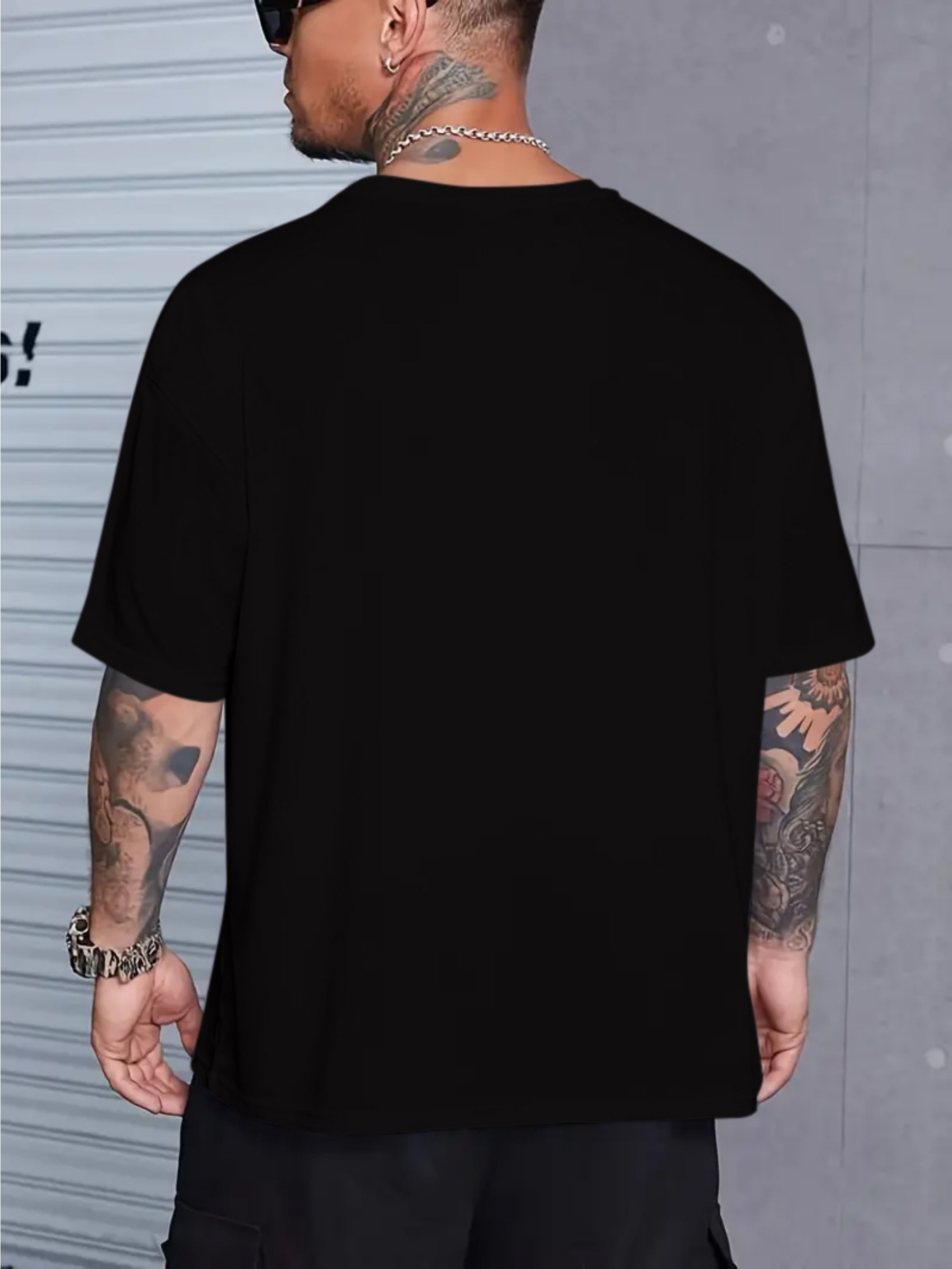 A Large Size Men’S Color-Blocked T-Shirt Featuring A Digital Print Of A Bird, Designed For Summer Outdoor Casual Sports With A Round Neck And Short Sleeves, Plus Size