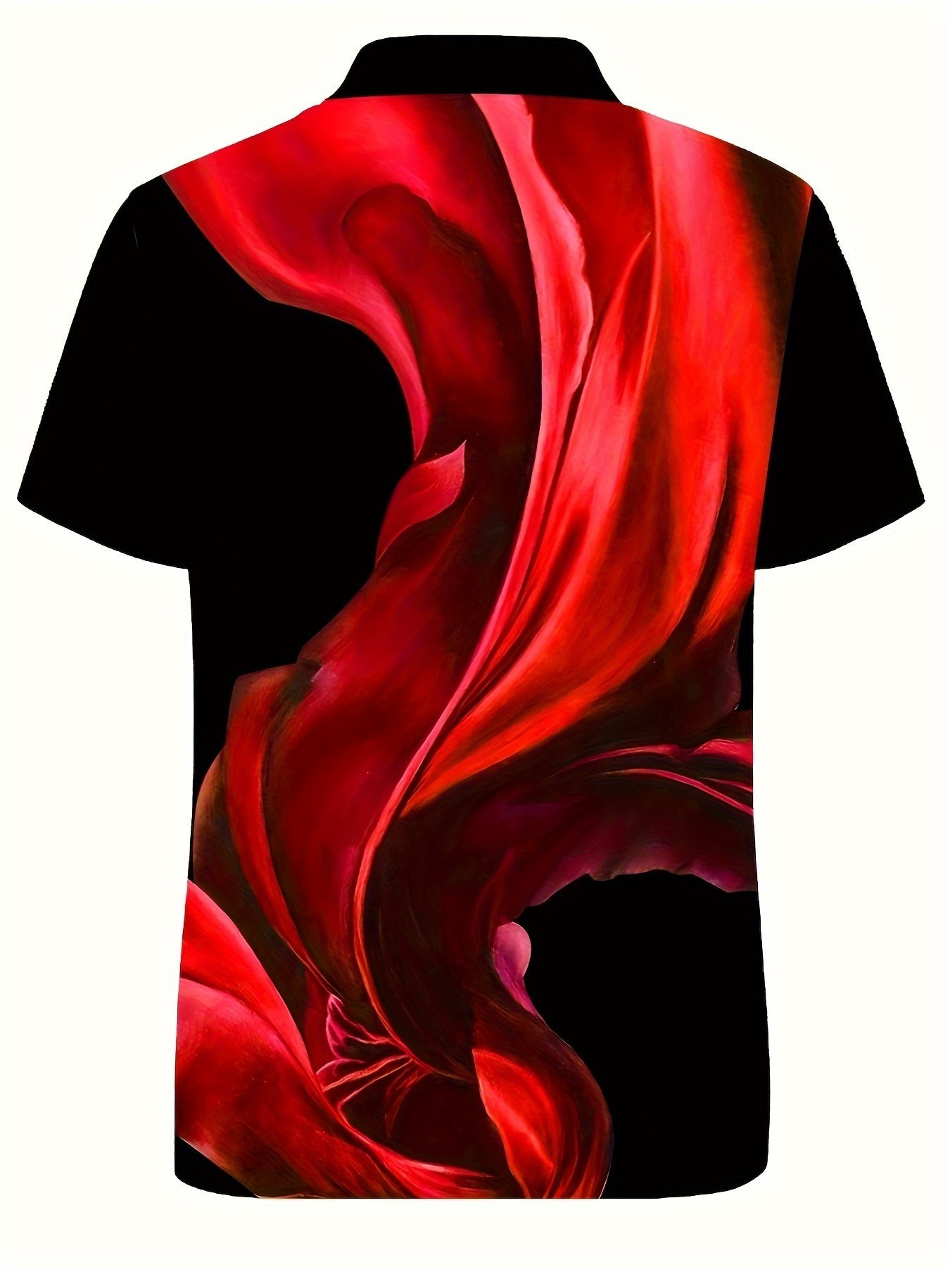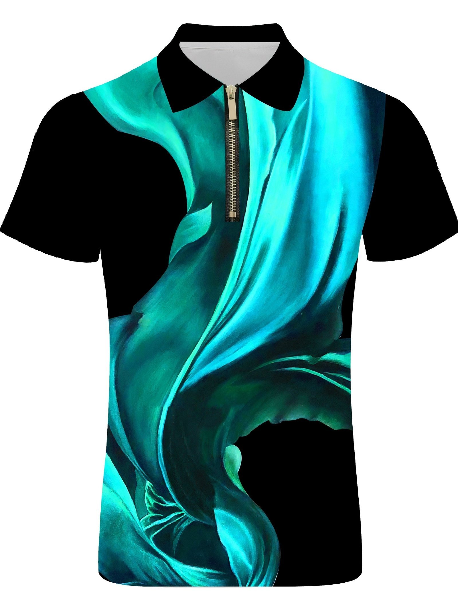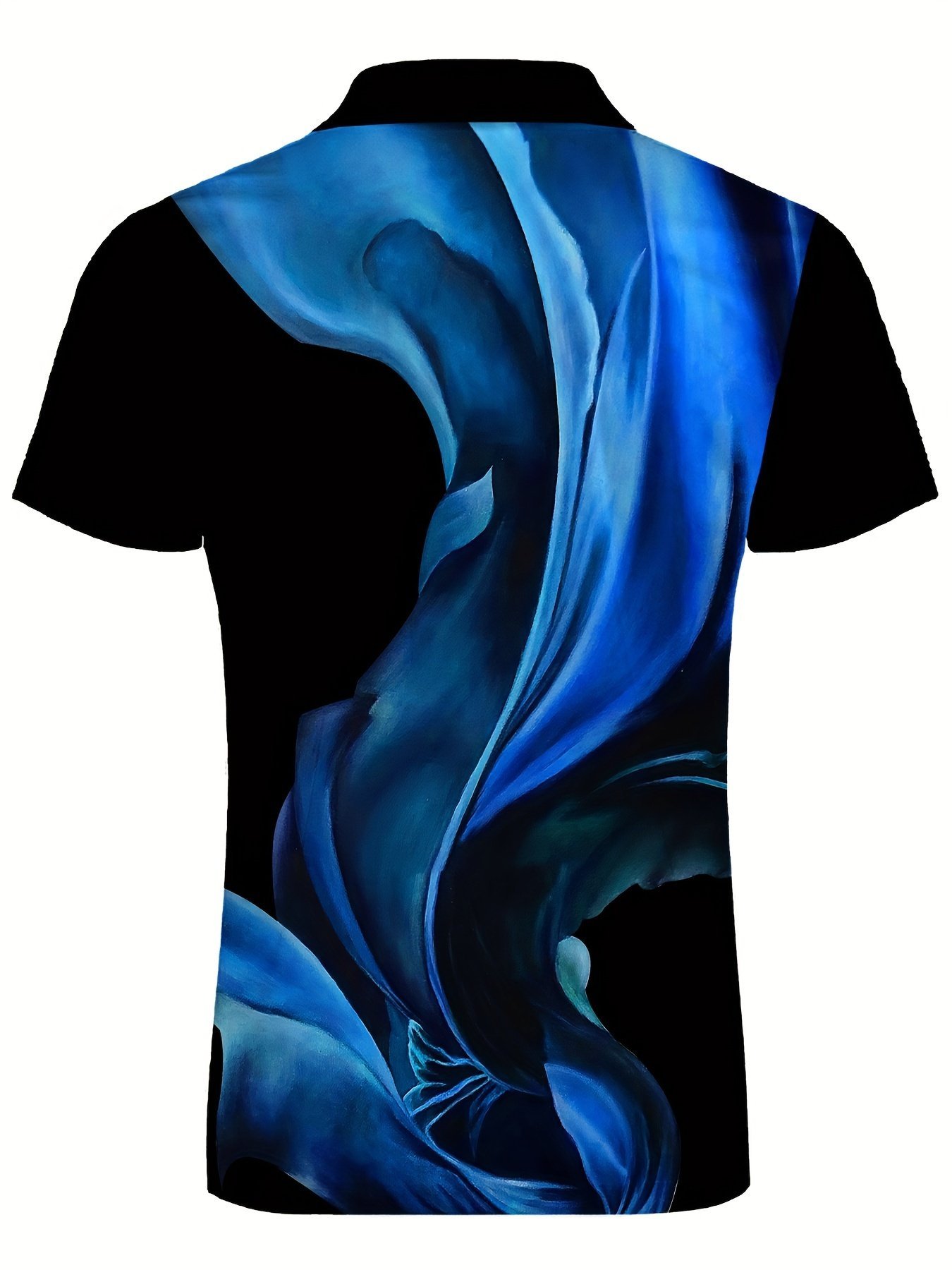 Men’S Plus Size Casual Fashion Short Sleeve Polo Shirt, Sky Blue 3D Print, Knit Fabric, Slight Stretch, Polyester 95%, Spandex 5%, Lapel Collar, Regular Fit For Spring/Summer/Fall