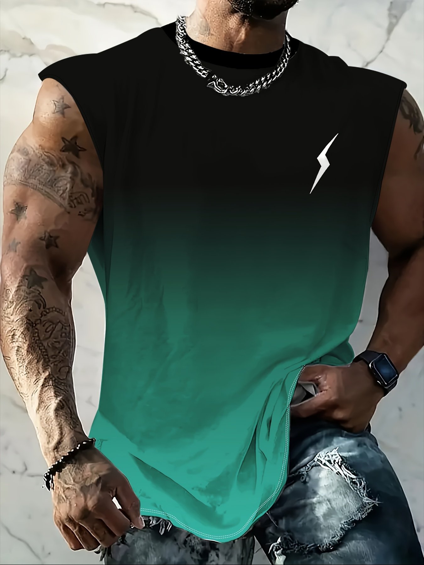 Be the first to review “Men’S Plus Size Gradient Print Tank Top – Breathable Sleeveless Shirt For Summer Fitness, Casual Wear, And Sports – Black To Blue Lightning Bolt Design, Summer Fitness Apparel | Round Neckline Shirt | Polyester Spandex Blend, Summer Tank Tops, Plus Size”