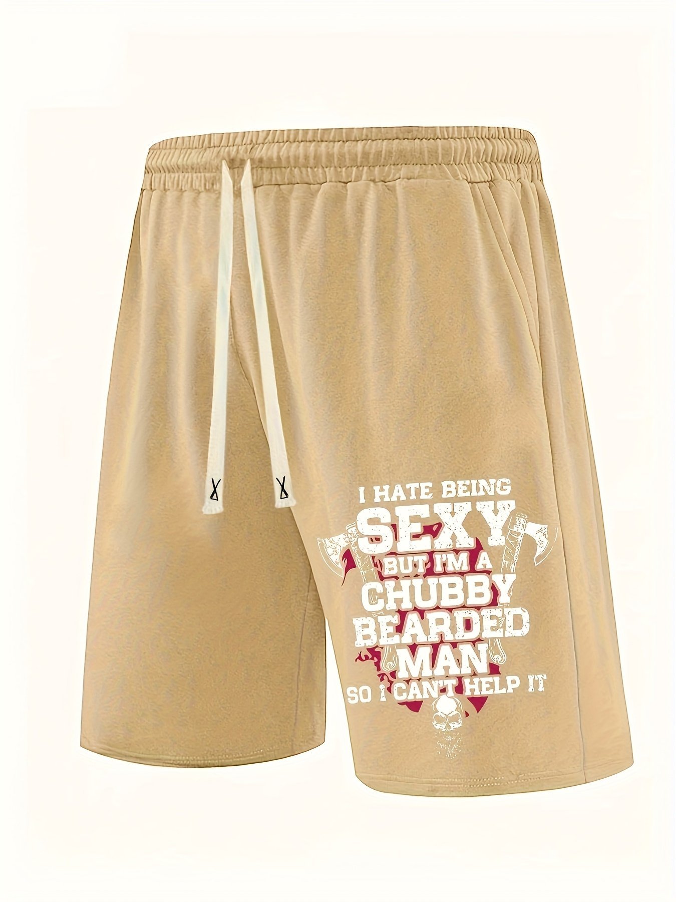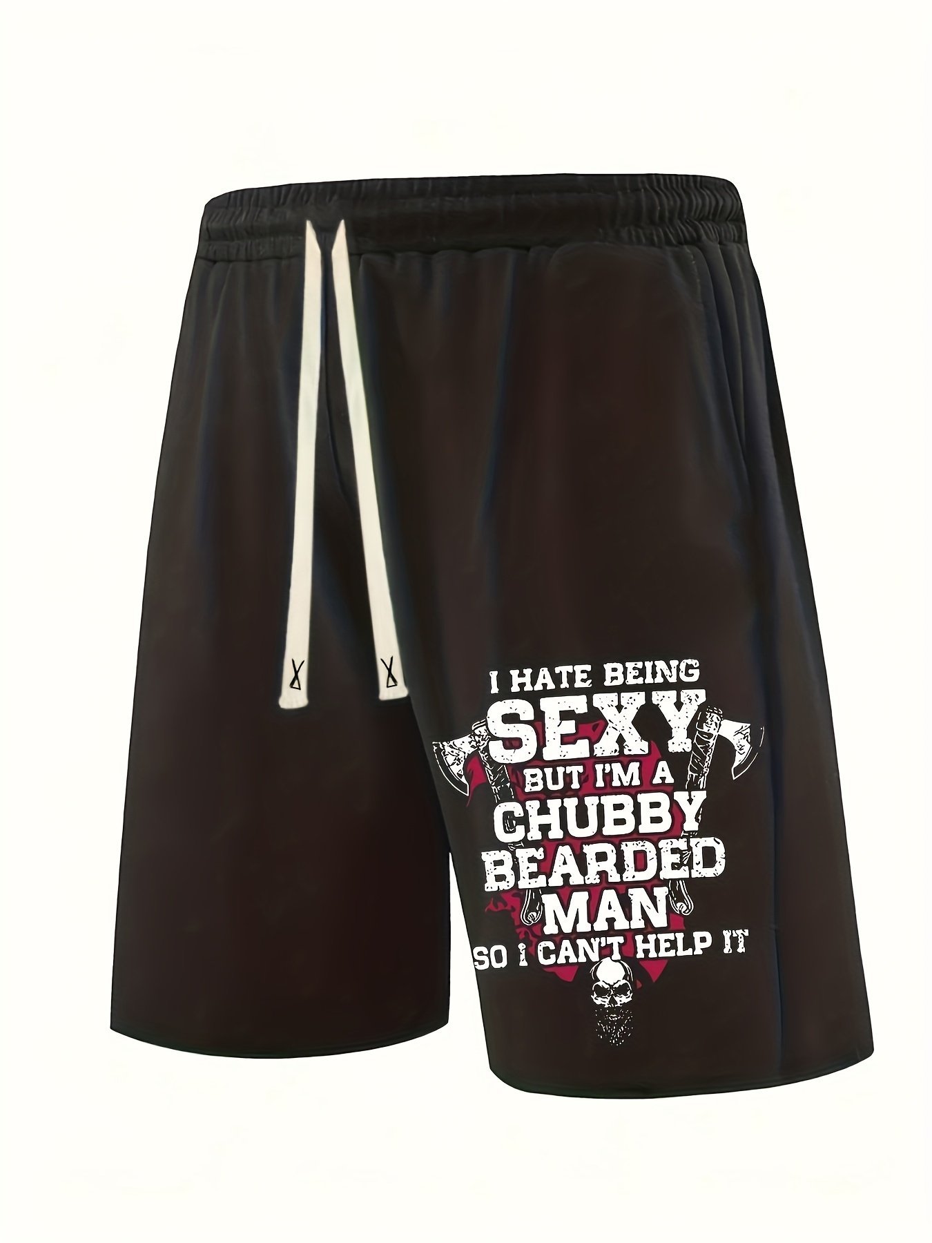 Men’S Plus Size Graphic Print Casual Shorts – Bold Lettering & Edgy Design, Elastic Drawstring Waistband, Regular Fit, Hand Wash Only, Everyday Clothing, Streetwear Style, Nontransparent Fabric, Plus Size