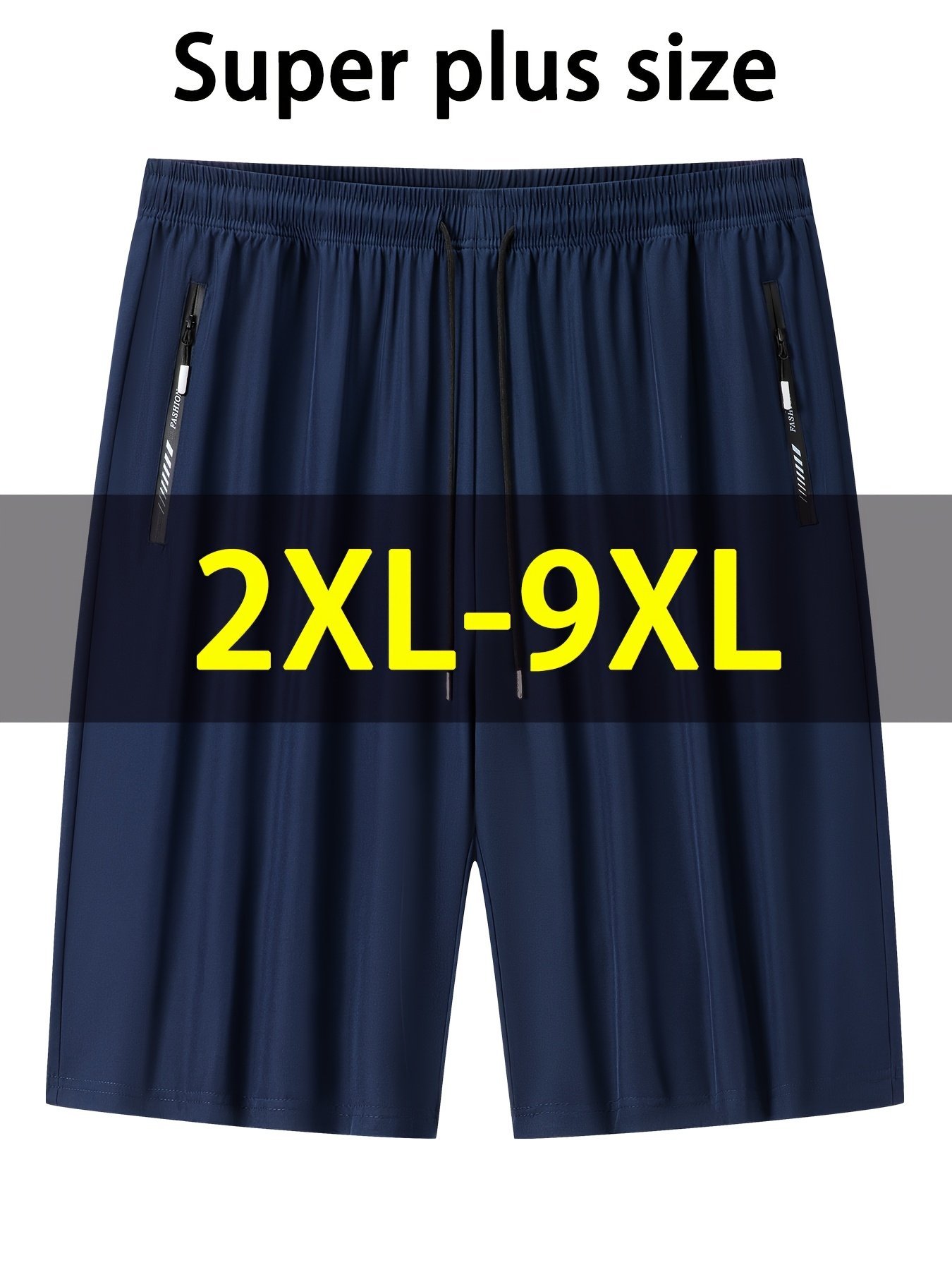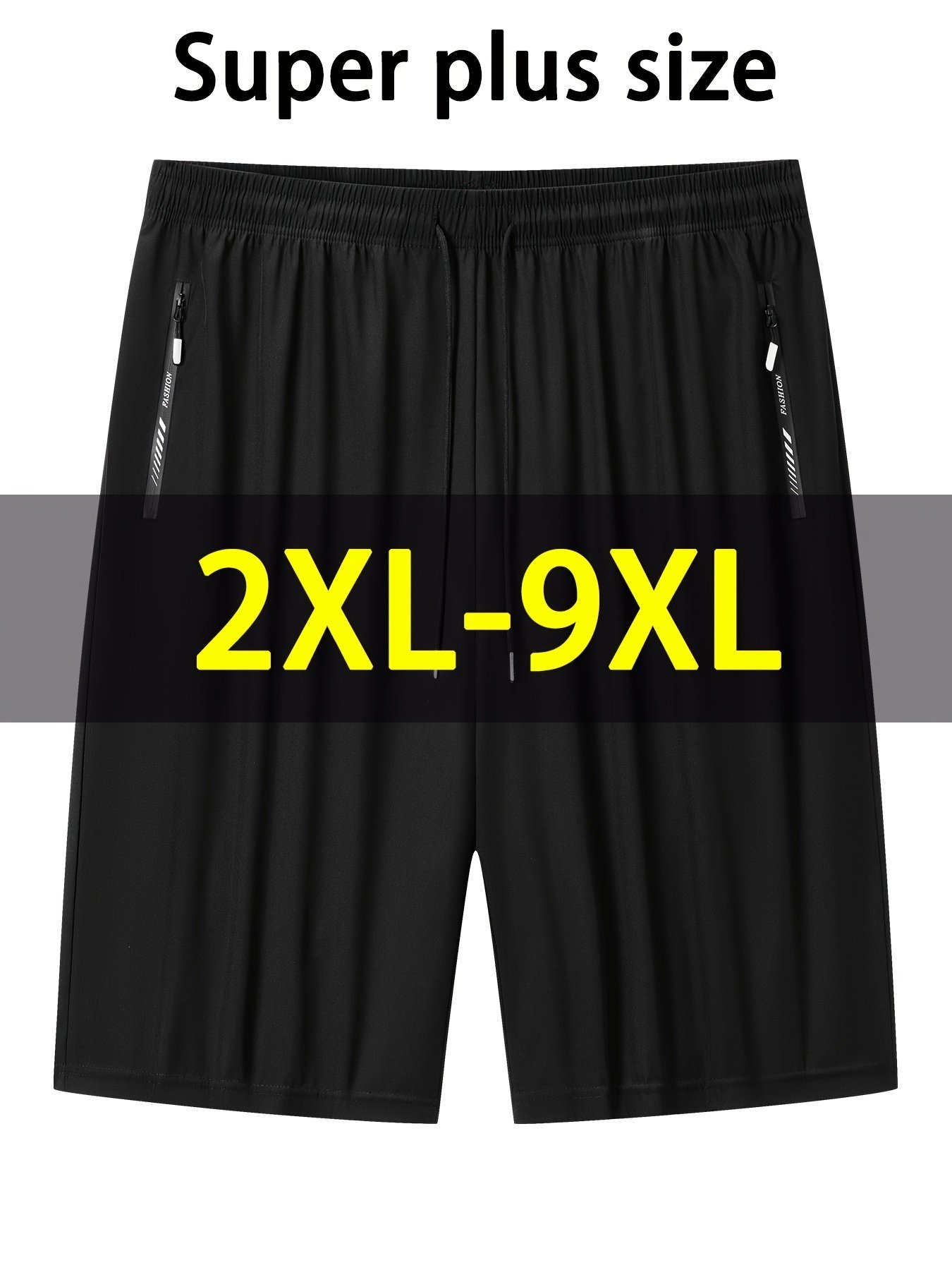 Men’S Plus Size Lightweight Summer Shorts – Stretchy, Breathable Fabric With Zipper Pockets, Casual Style, Solid Color, Sizes 2Xl-9Xl, Plus Siz