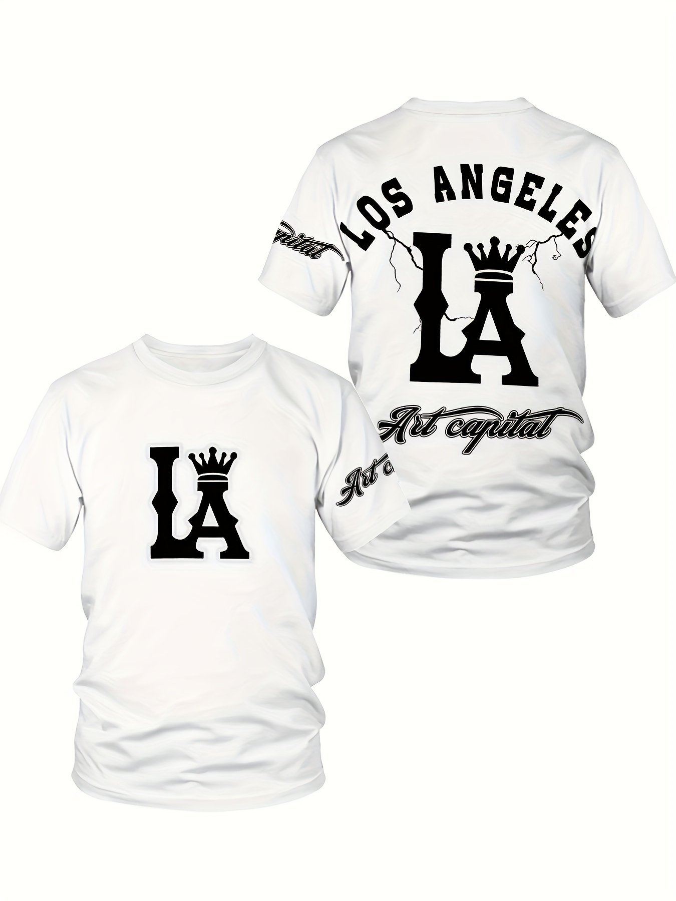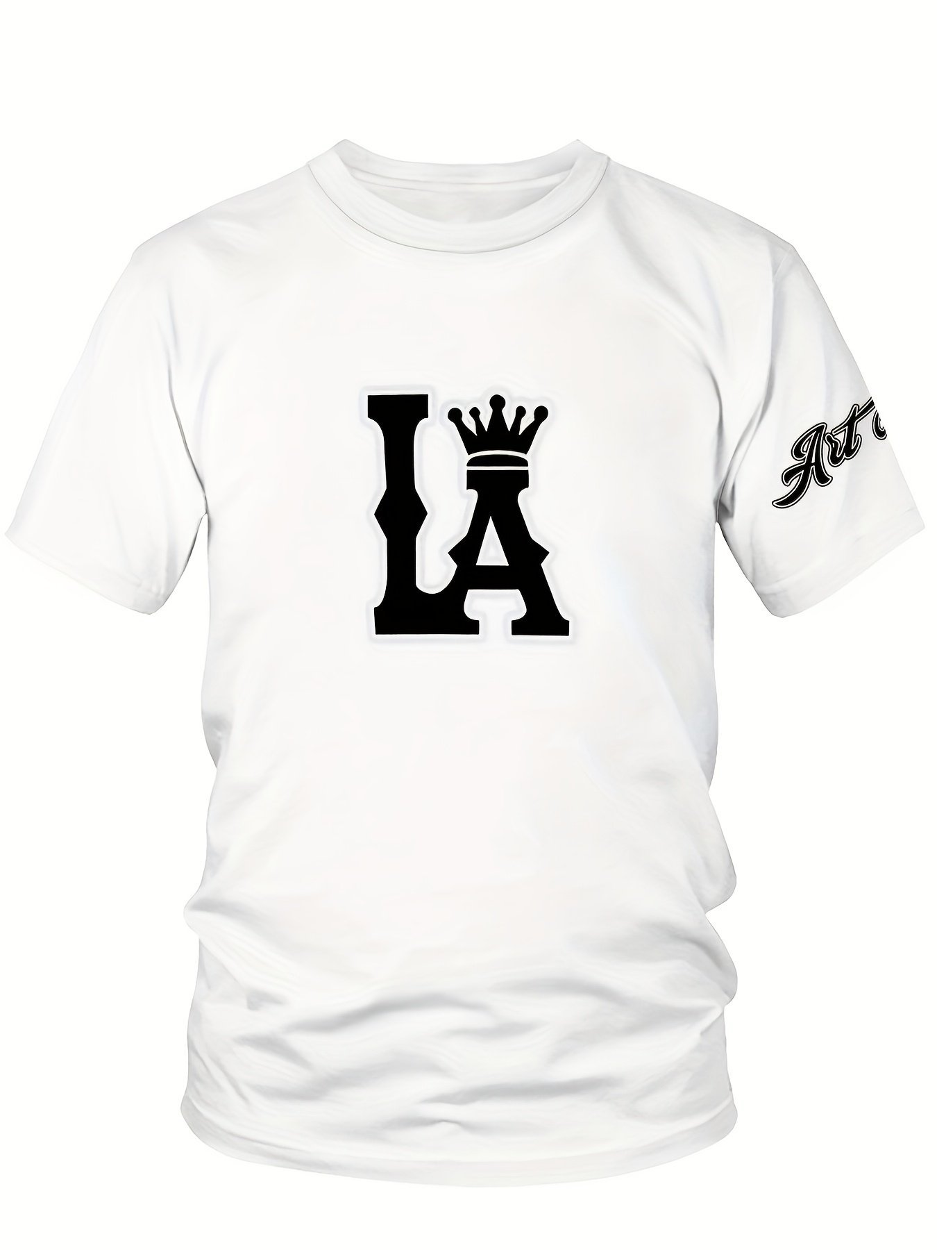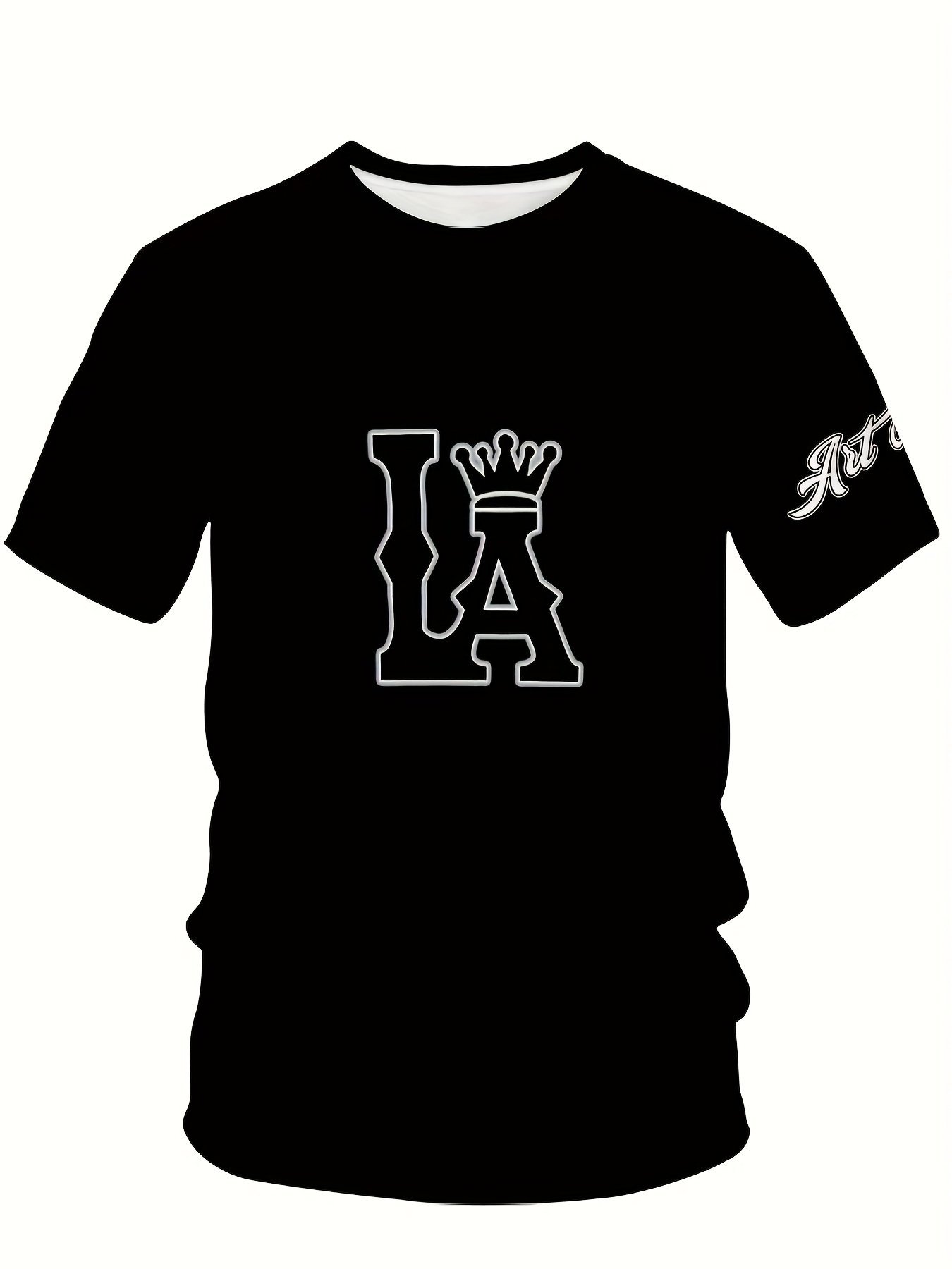 Men’S Plus Size Los Angeles Graphic Print T-Shirt – 3D Crown Design, Stretch Polyester-Spandex Blend, Lightweight 150Gsm, Machine Washable Casual Streetwear Tee, Sporty Tshirt | Urban Fashion | Smooth Texture Shirt, Plus Size
